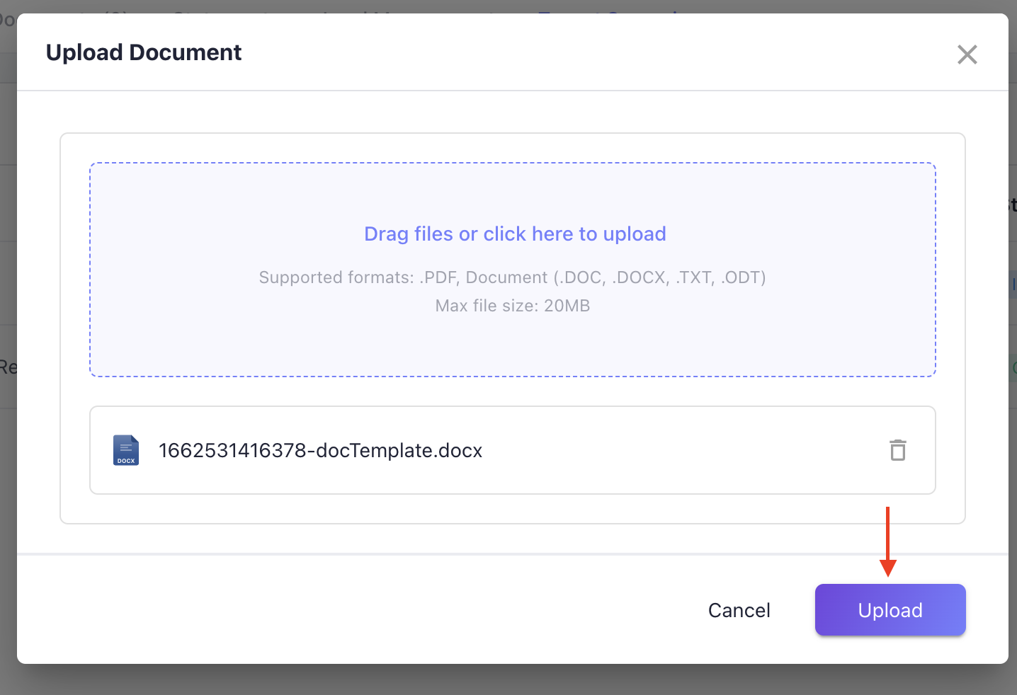 From here, you can upload your Documents to the Reference. We accepted .PDF and any .DOC or .TXT format. Once you have uploaded your Document (or Documents) select Upload