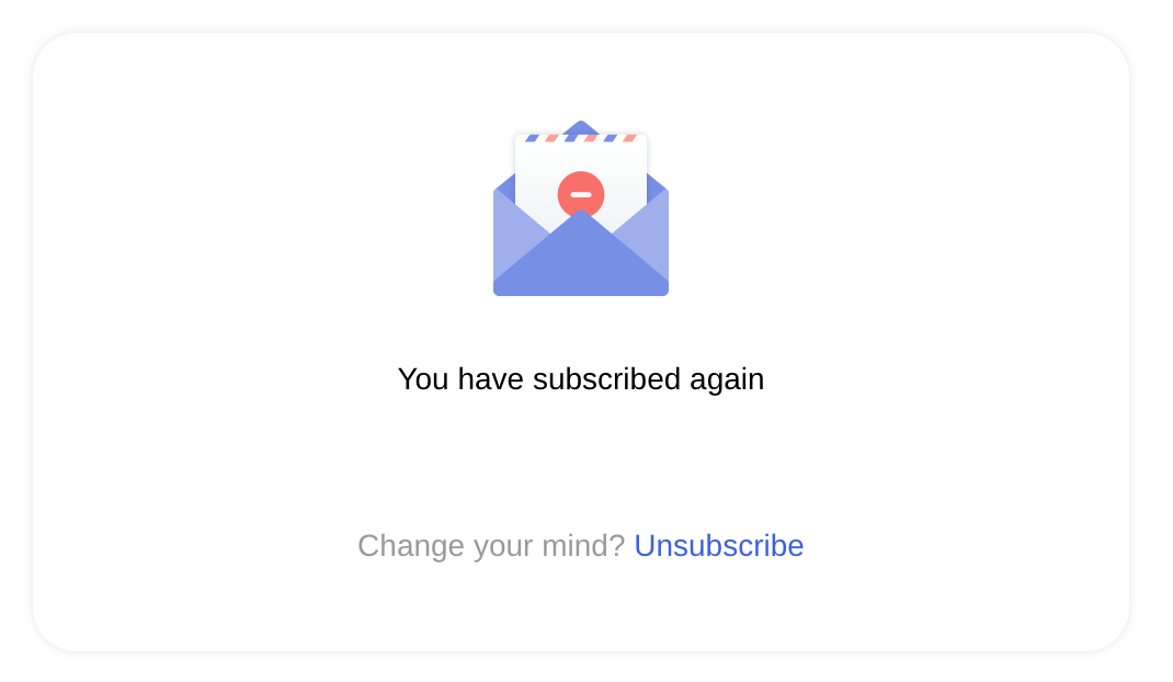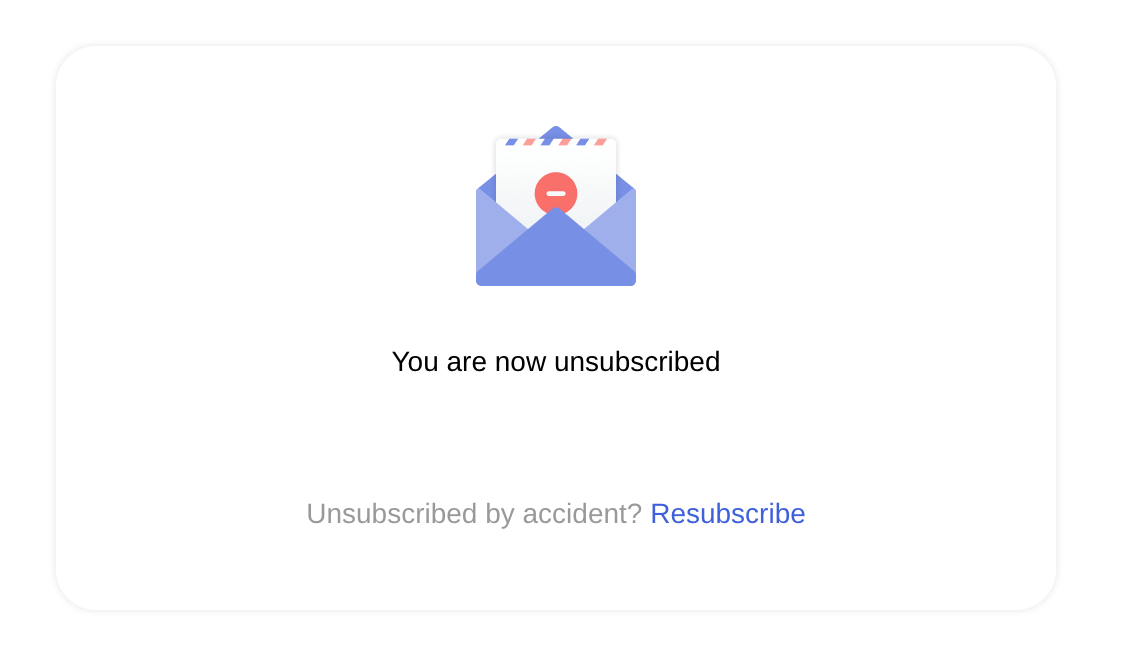 After clicking the Unsubscribe button, they will see a confirmation with the option to resubscribe as seen here: