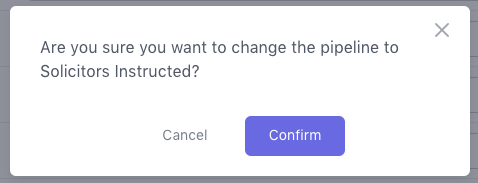 The progression pipeline remains fixed at the top regardless of which tab you switch to on the left sidebar. When changing the pipeline stage, you'll be prompted to confirm: