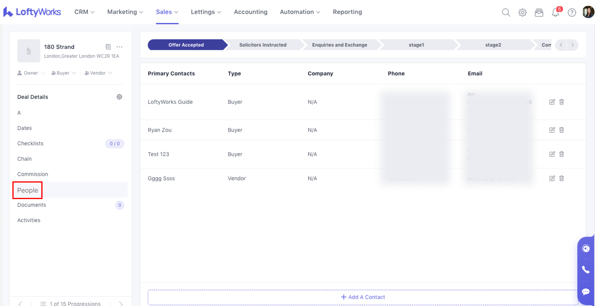 The People tab in Sales Progression shows everyone involved in a progression. Please check People in Sales Progression for detailed information about people tab.