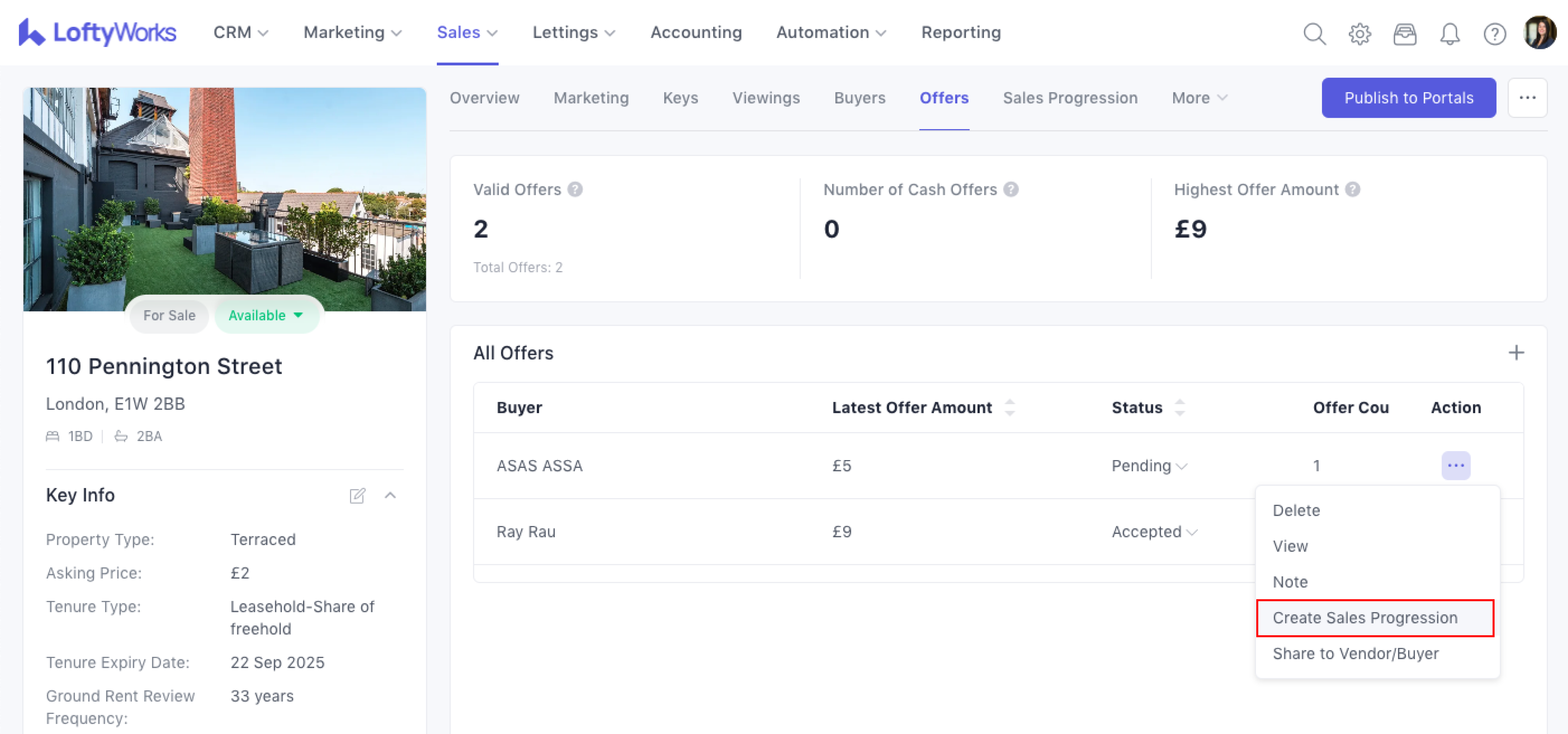 Creating a Sales Progression from an Offer