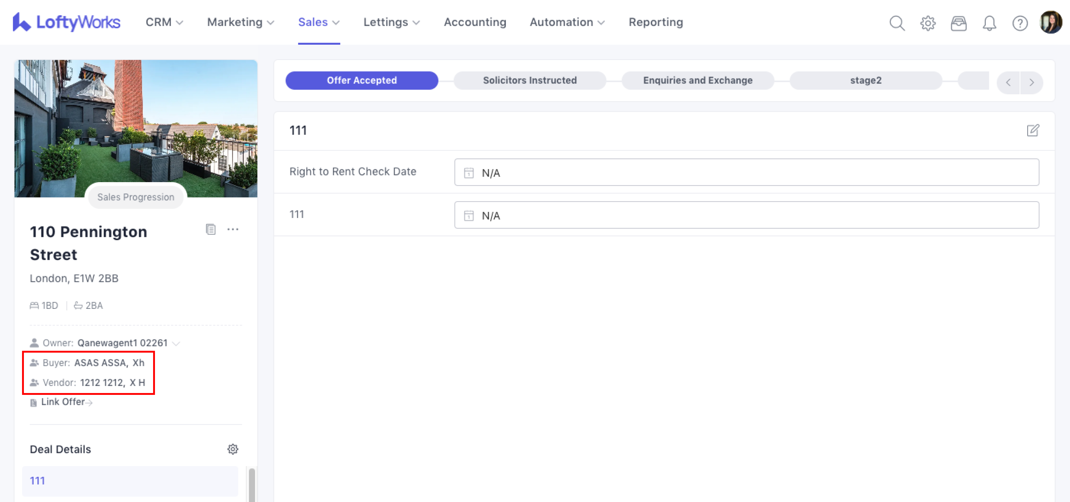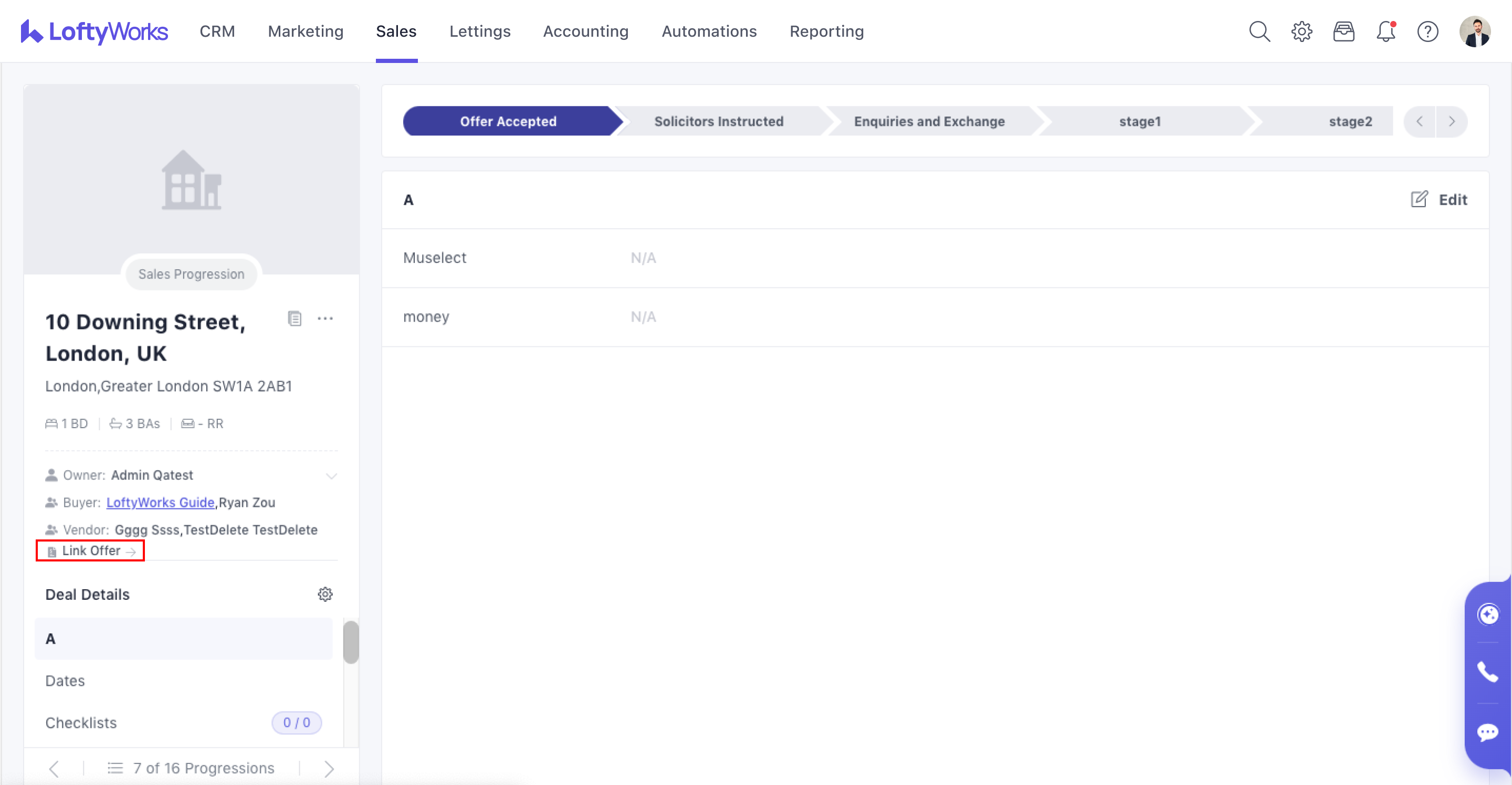 In LoftyWorks, every Sales Progression(non-cancelled) is directly connected to an Offer. This link ensures the progression reflects the price, parties, and terms agreed during negotiation.