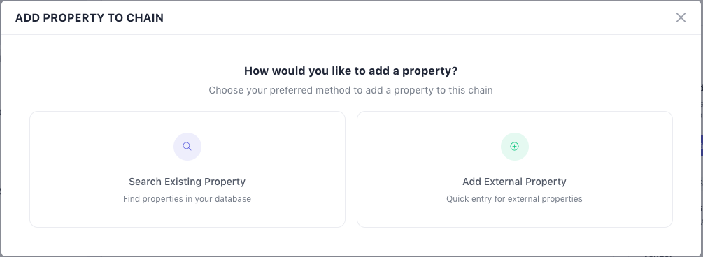 Inside Add Chain → Search Existing Property, you can search by property address.