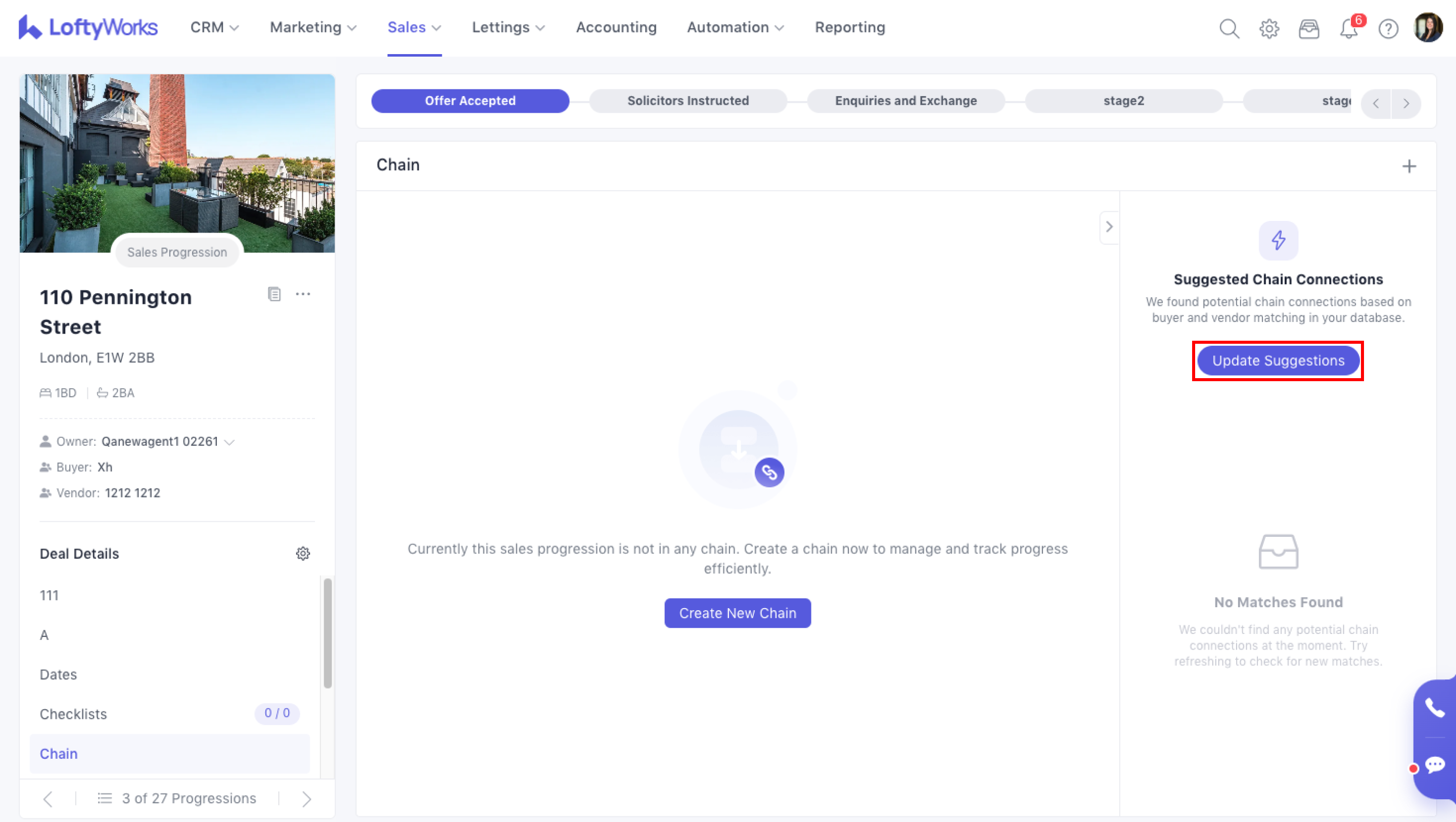 In UK property sales, many progressions depend on one another. LoftyWorks provides Chain Management directly inside Sales Progression so agents can understand how a progression fits into the wider chain, identify risks, and keep all related parties informed.