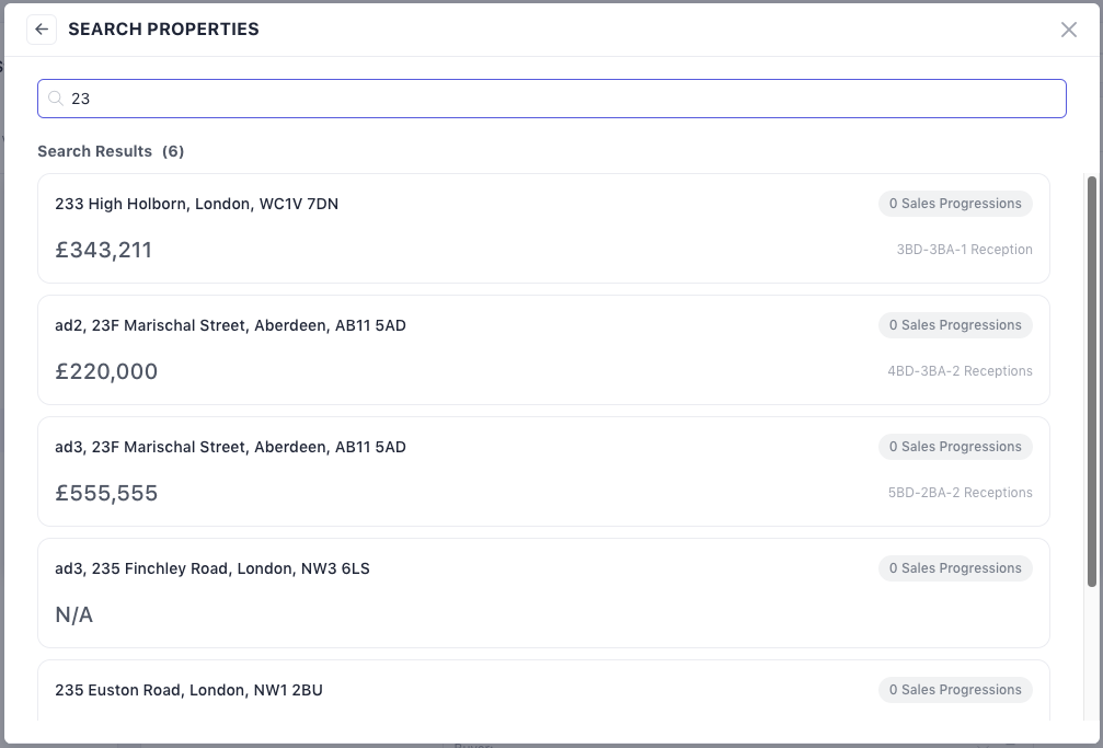 Number of related Sales Progressions (excluding cancelled/completed)