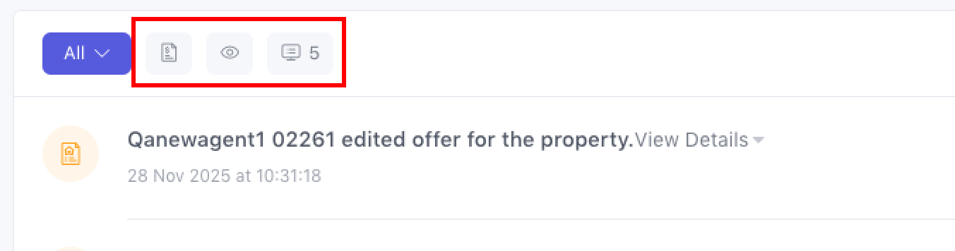 By default, the icons for Offers, Viewings and System Log are shown here: