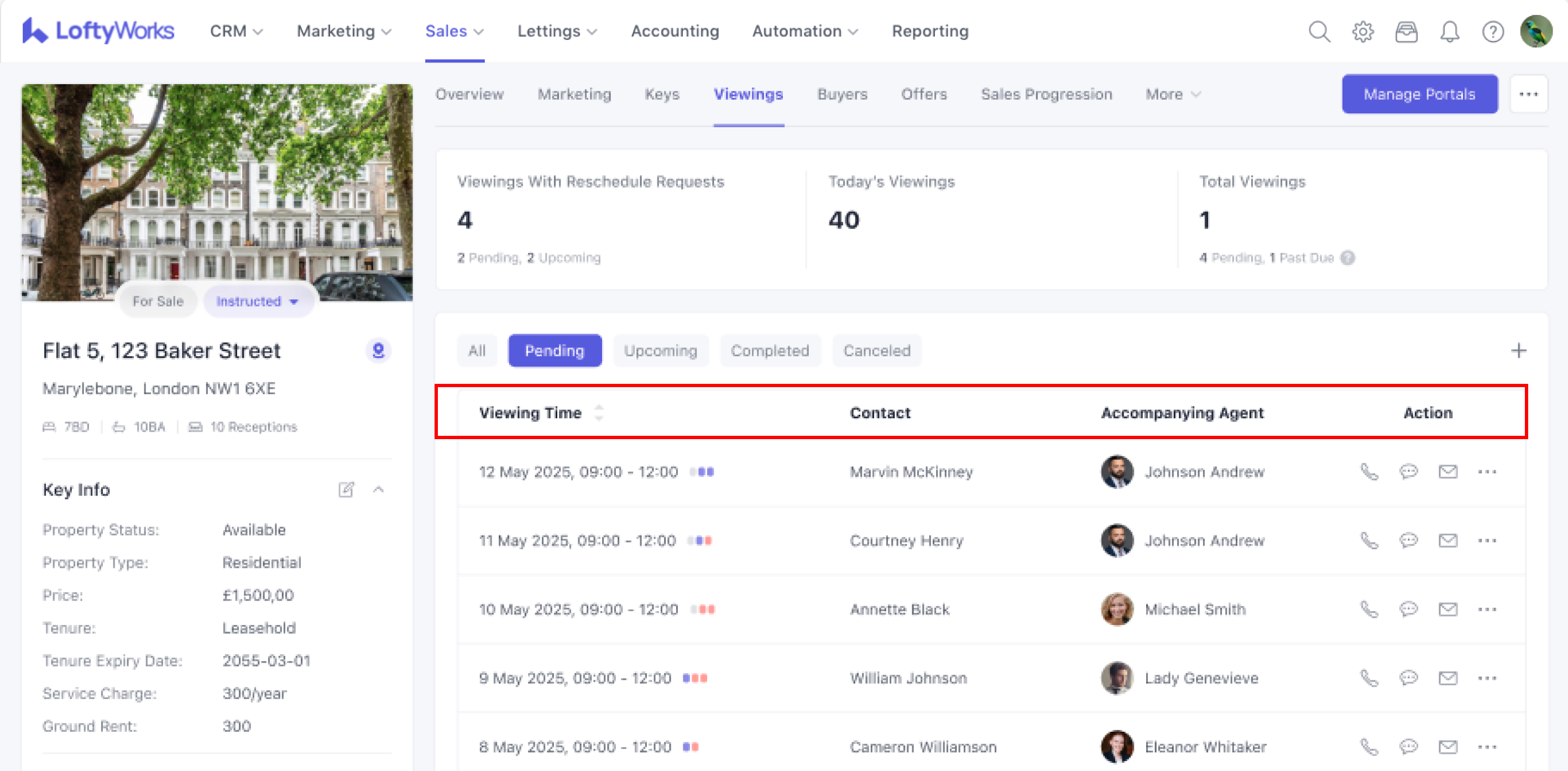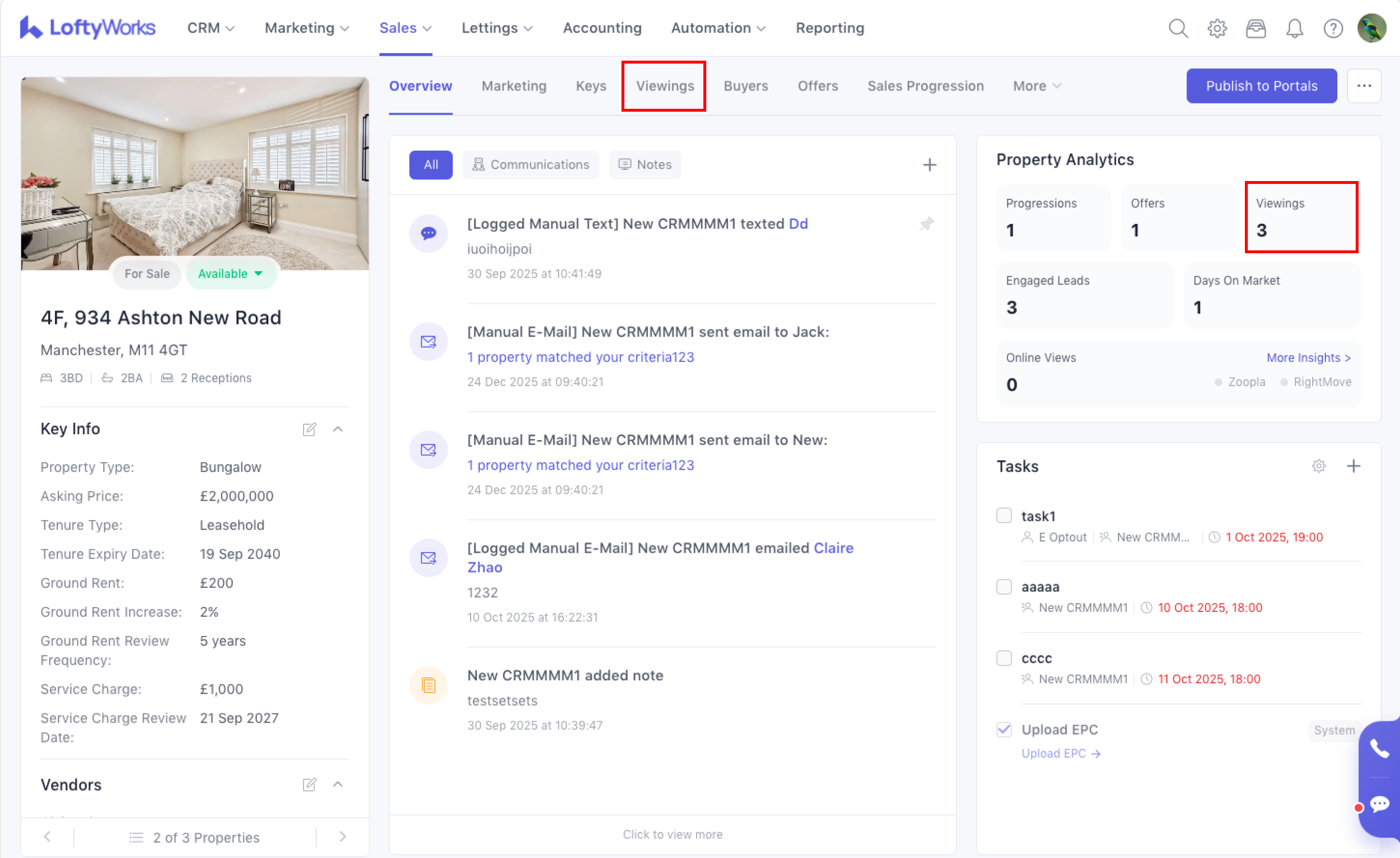 You can access the For Sale Property's Viewings tab in two ways: