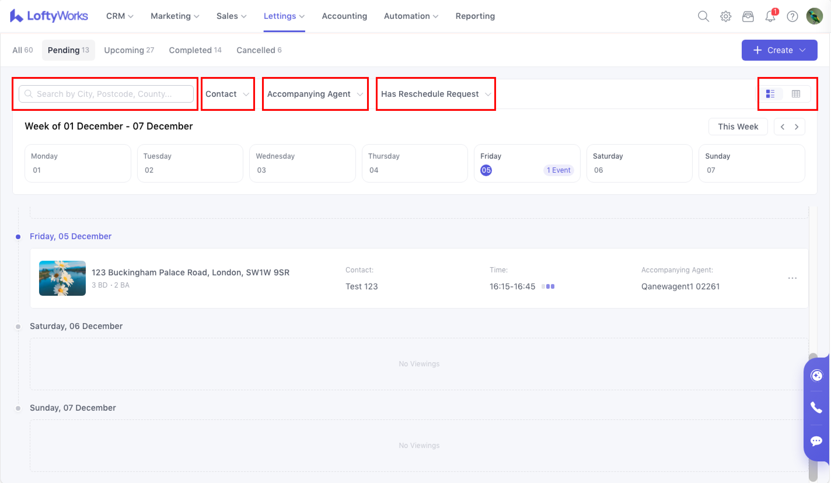 The Viewing List allows agents to manage, filter, and review all property viewings across Lettings. This article explains how the Viewing List works, how viewings are displayed, and the actions available based on roles and viewing status.