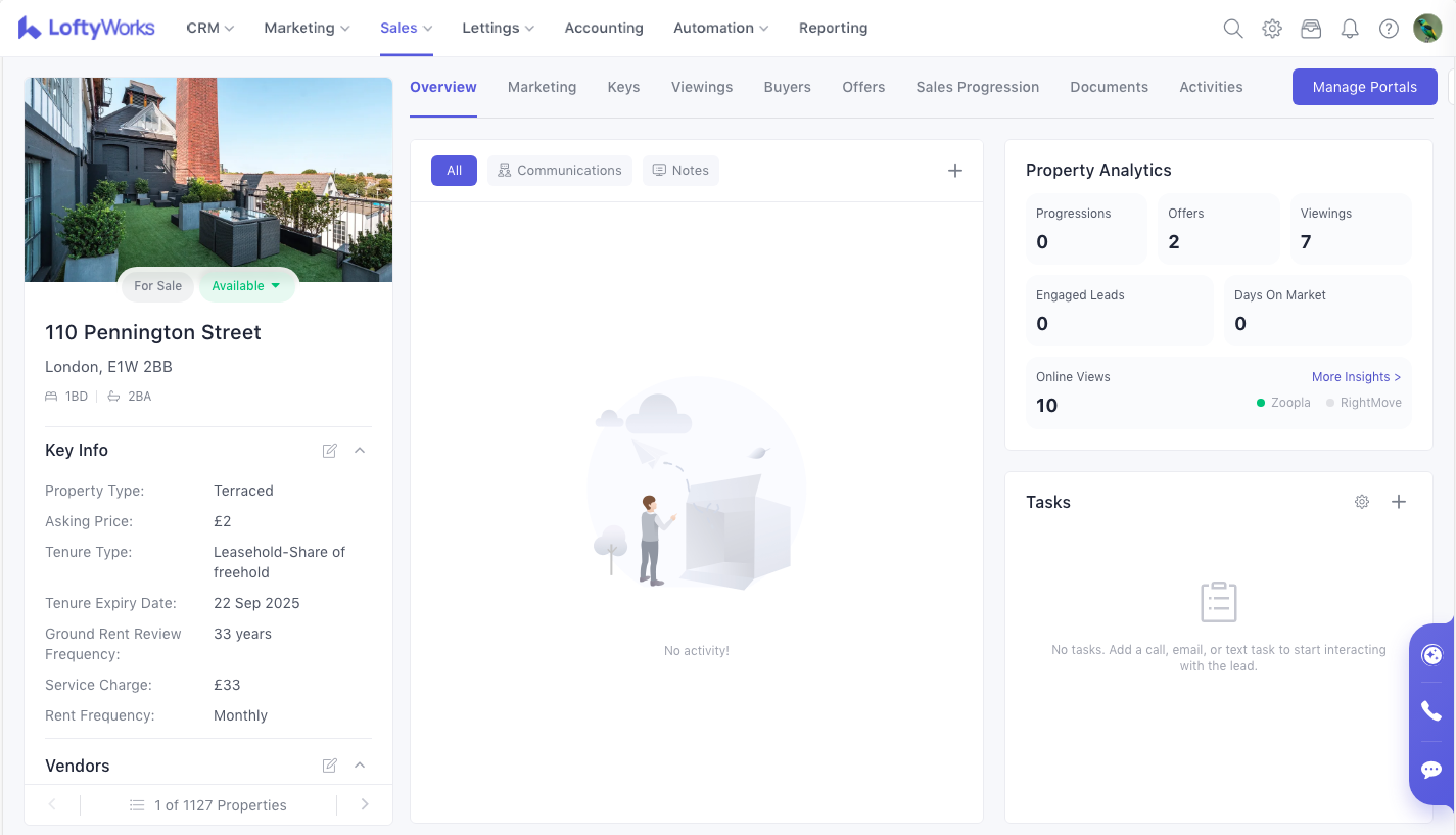 From there, you can manage the property’s marketing, viewing instructions, images, legal documents, communications and more.