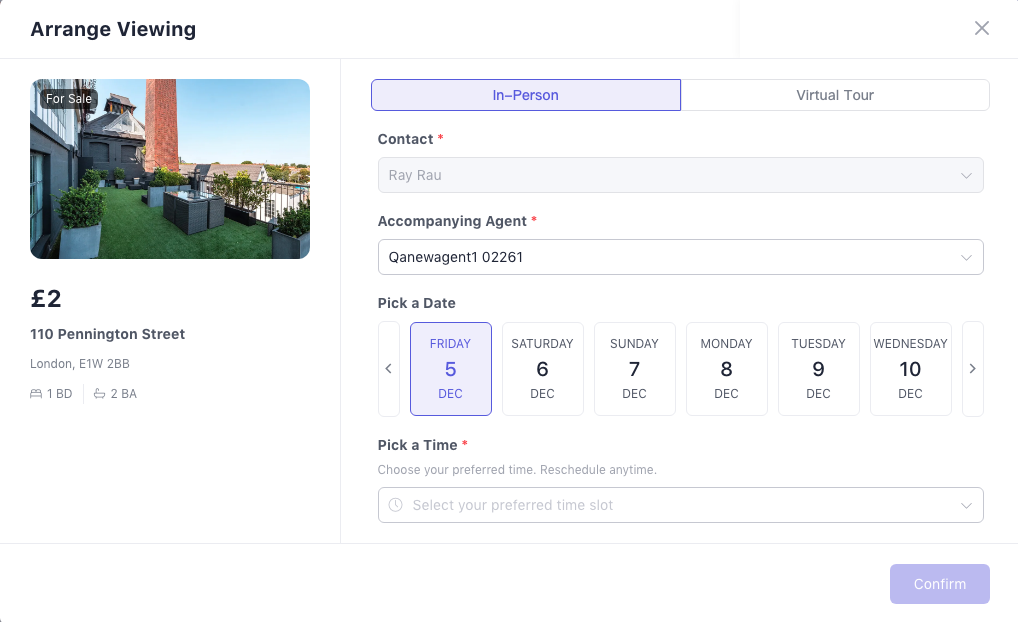 Arrange Viewing (property + contact pre-selected)