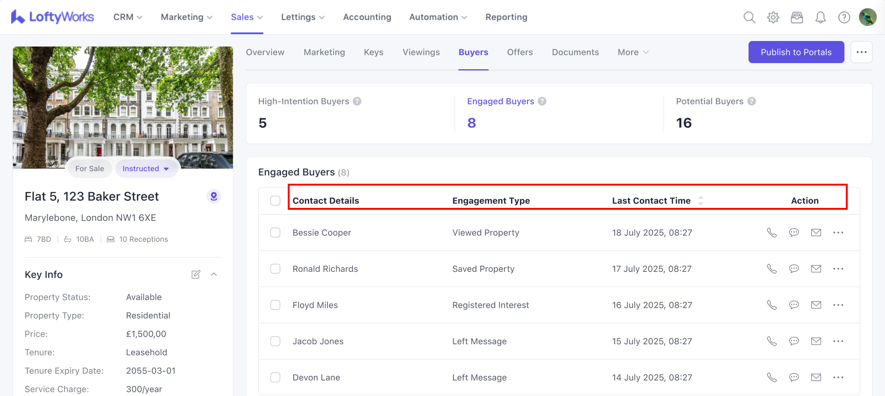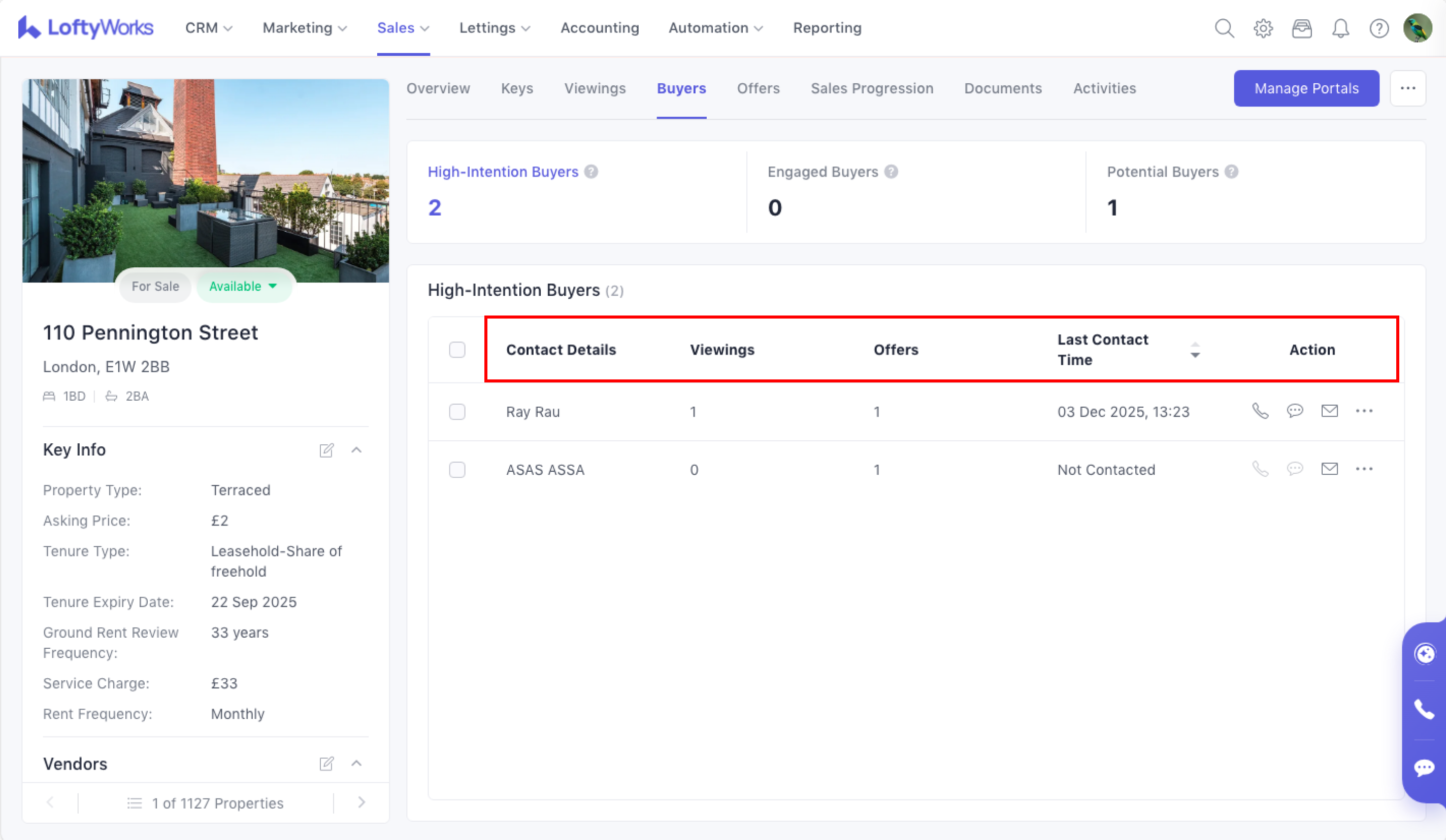 The Buyers Tab helps you understand which contacts are actively engaging with a For Sale property. It groups buyers into meaningful categories—High-Intention, Engaged, and Potential—so you can prioritise follow-up and manage interest efficiently.