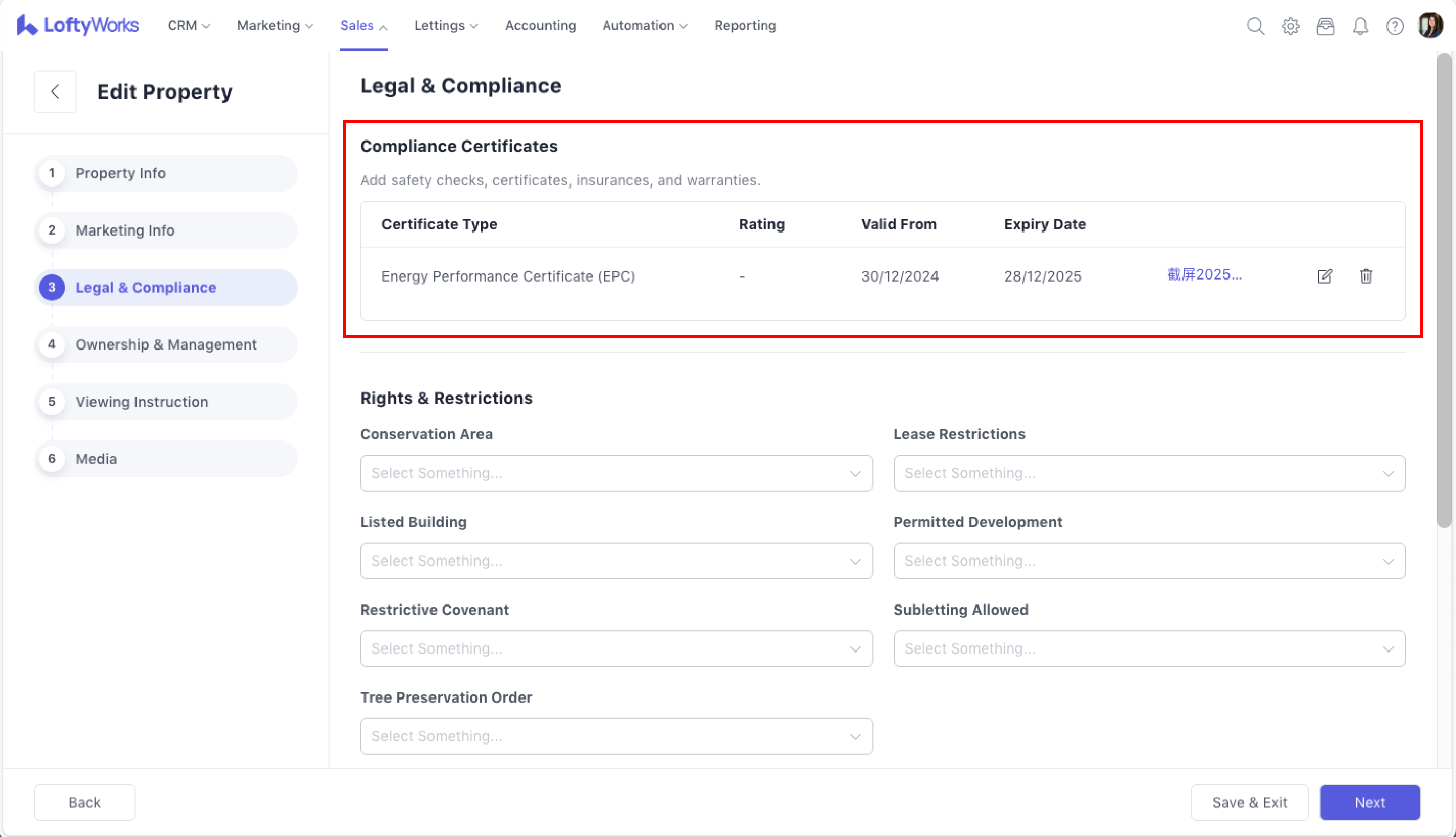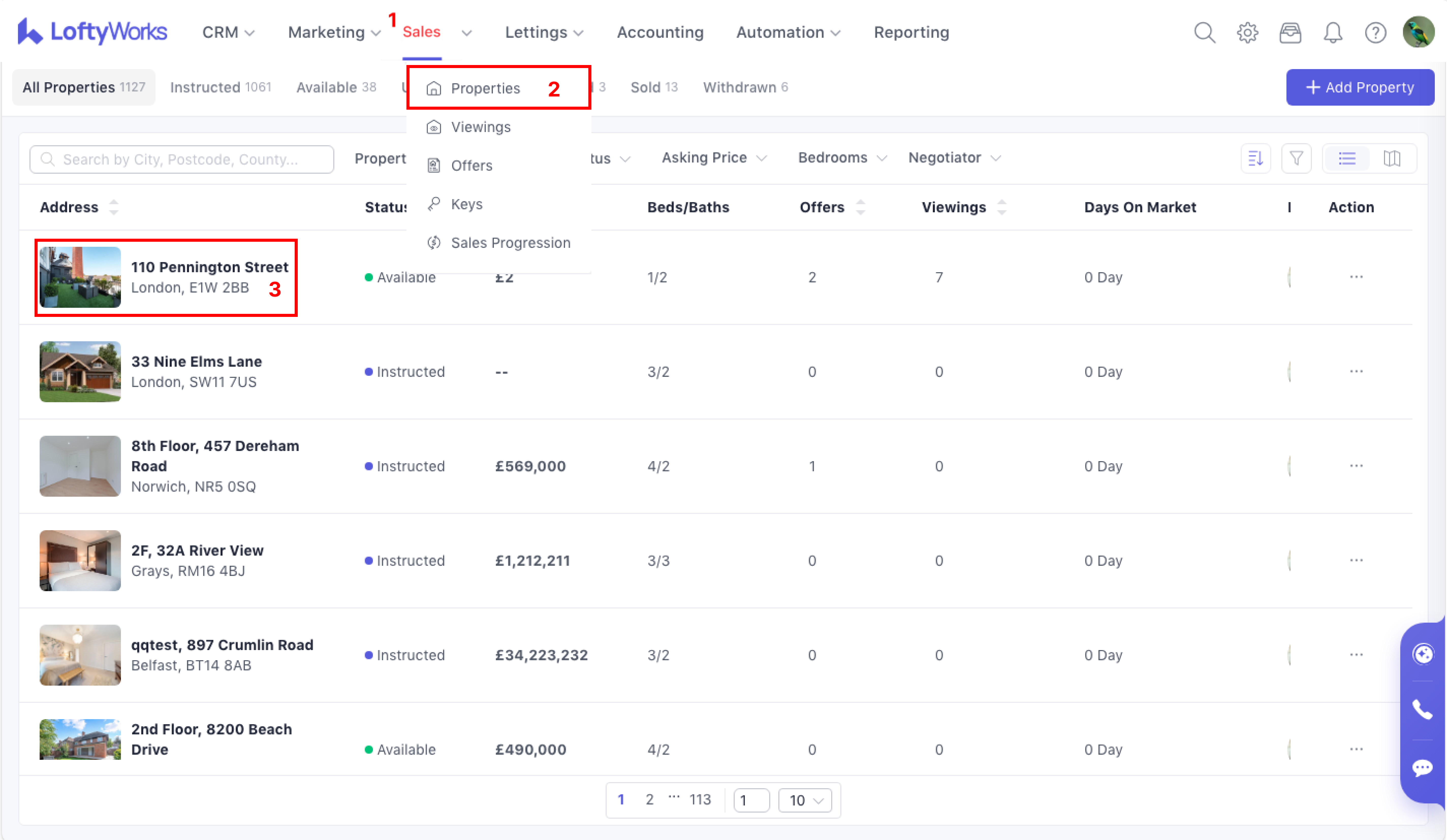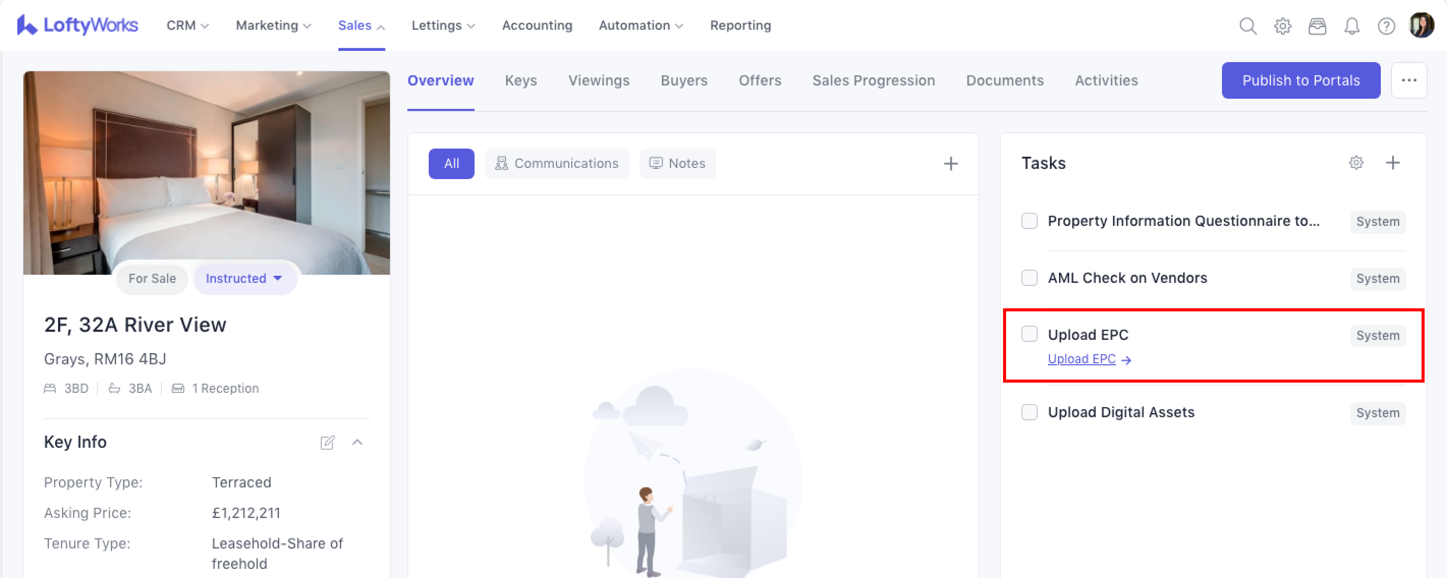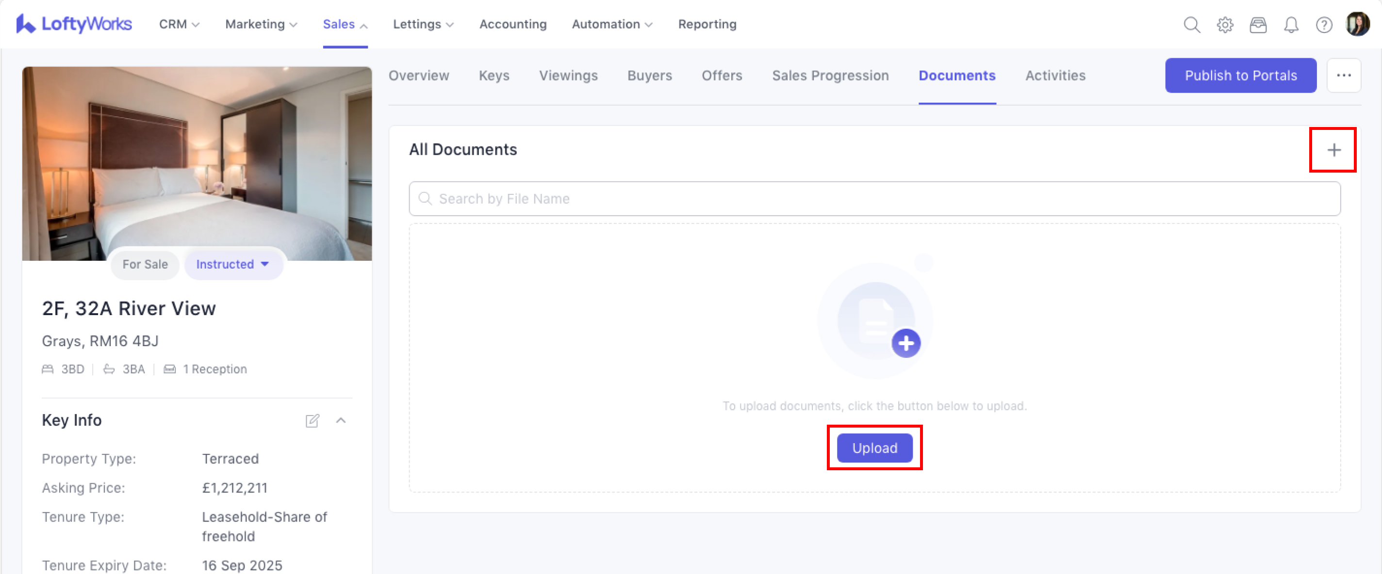 Navigate to Sales > Properties > select a property and enter its detail page by clicking on its address
