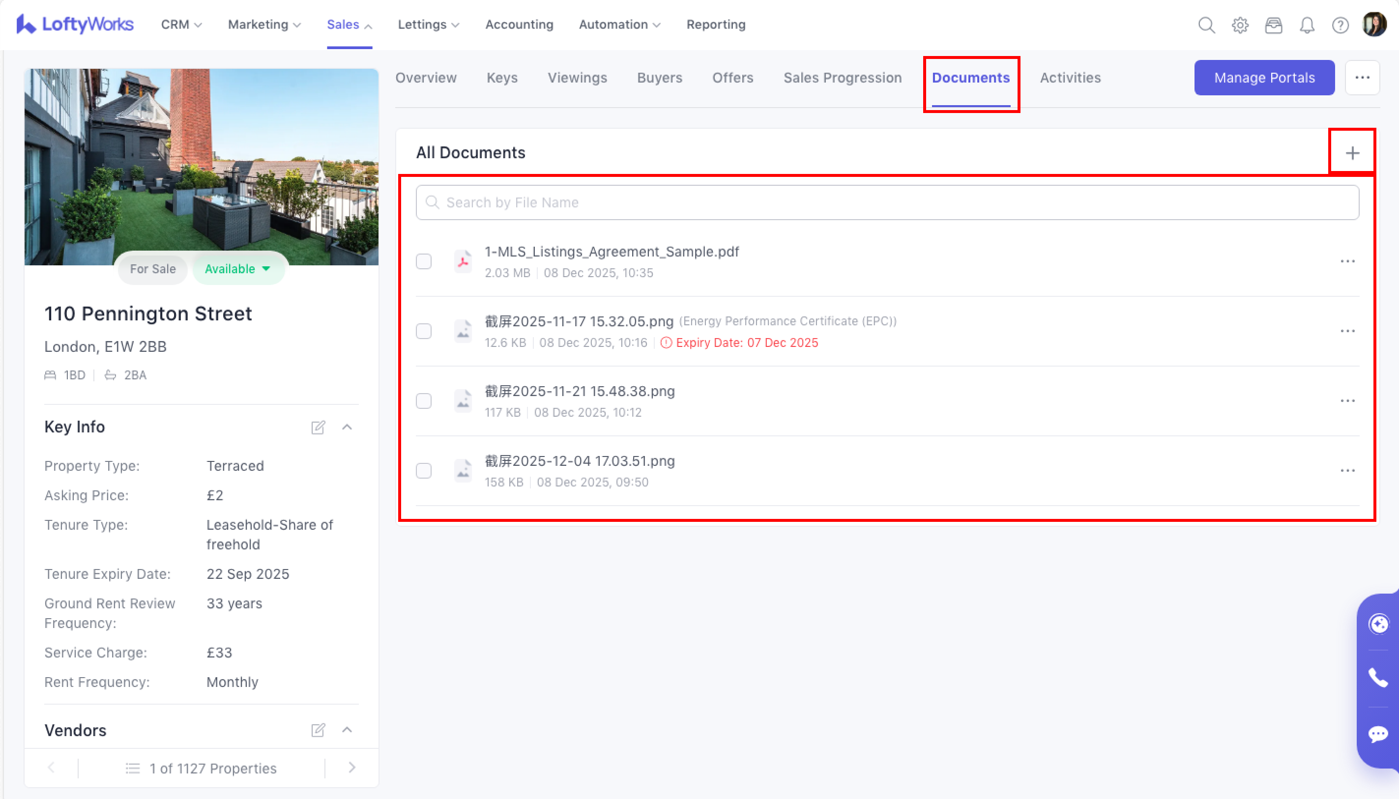 The Document Tab allows you to store, manage, and organise all property-related documents in one central place. This includes certificates, compliance documents, and general files uploaded during property creation or management.