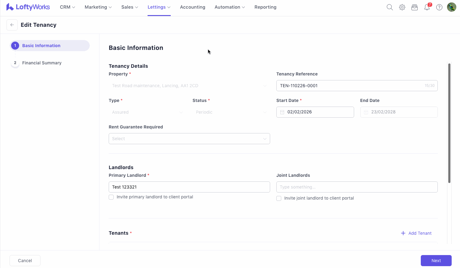 Edit Tenancy