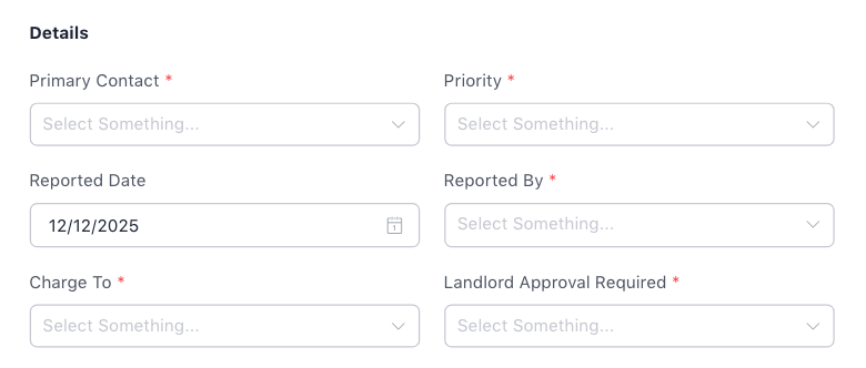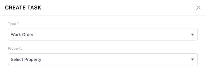 Work orders can be created from several points in the system, including the Maintenance page, the Maintenance Tab in property detail page, the Request Detail Page(All three at the top-right corner of the page) or through the Calendar task creation flow.
