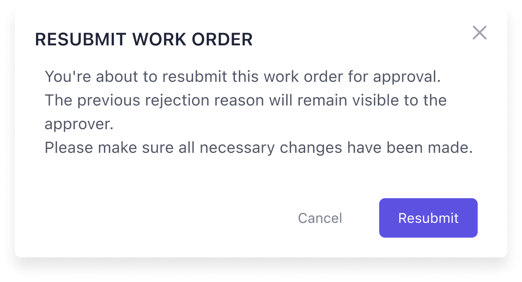 If a landlord or contractor rejects the work order, you will be able to resubmit it after making the necessary adjustments.