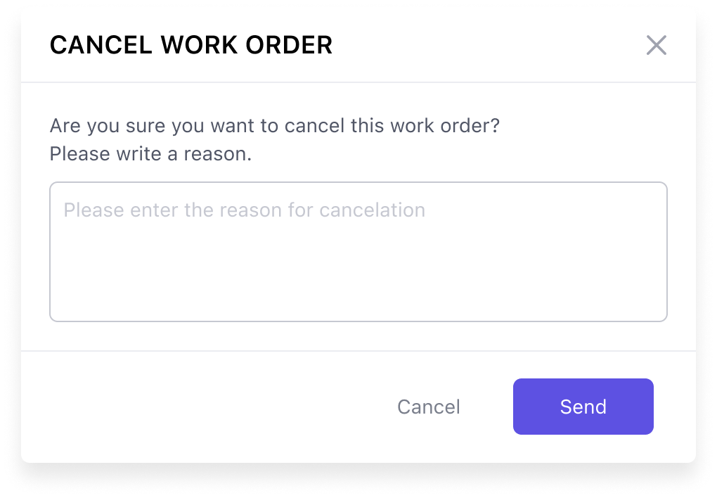 Requests – shows tenant-submitted issues that haven’t yet been converted into work orders. Requests similarly display the property, category, priority and reporting details. Each request includes a quick action to cancel it, which requires entering a cancellation reason.
