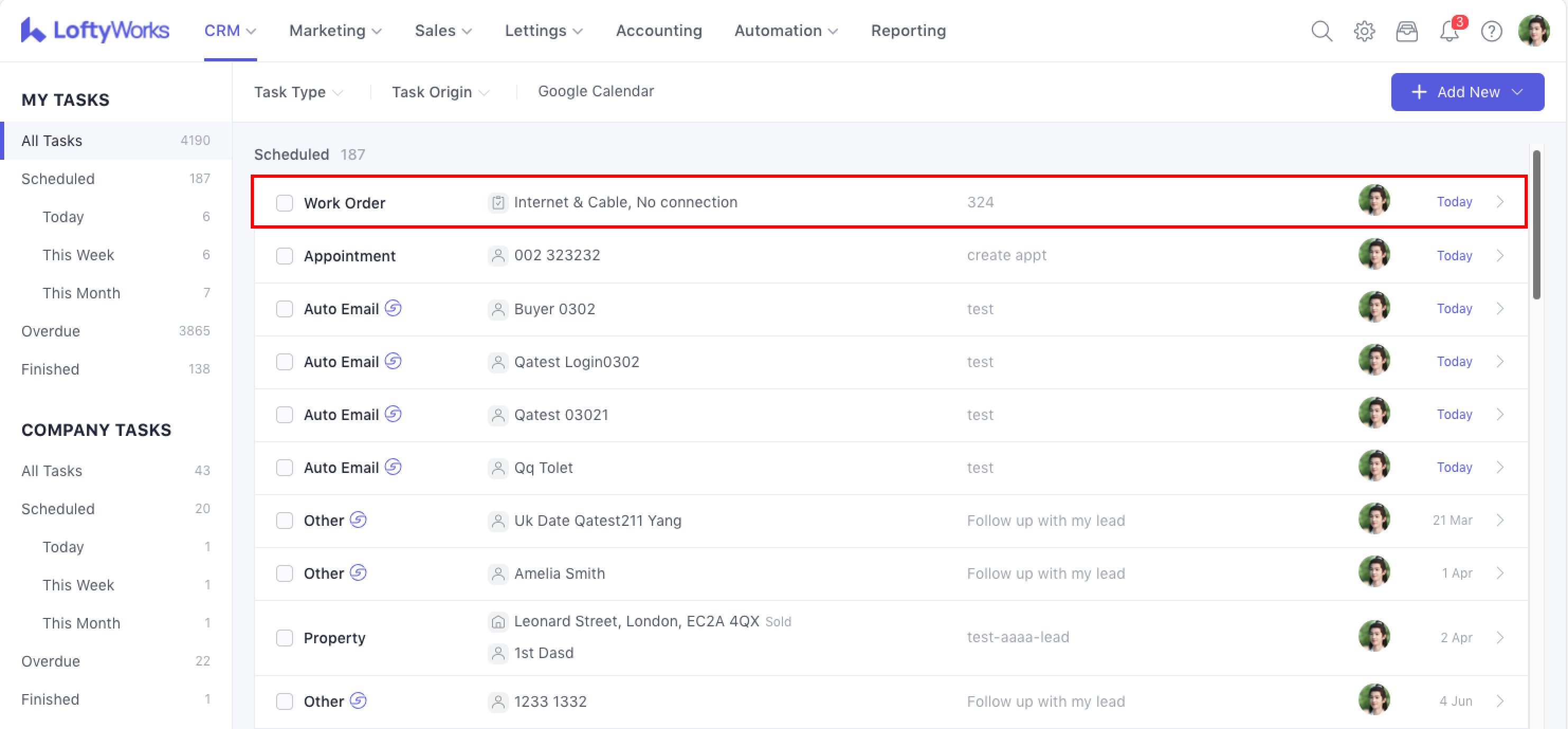 Selecting a task takes you directly to the corresponding work order or task detail page.