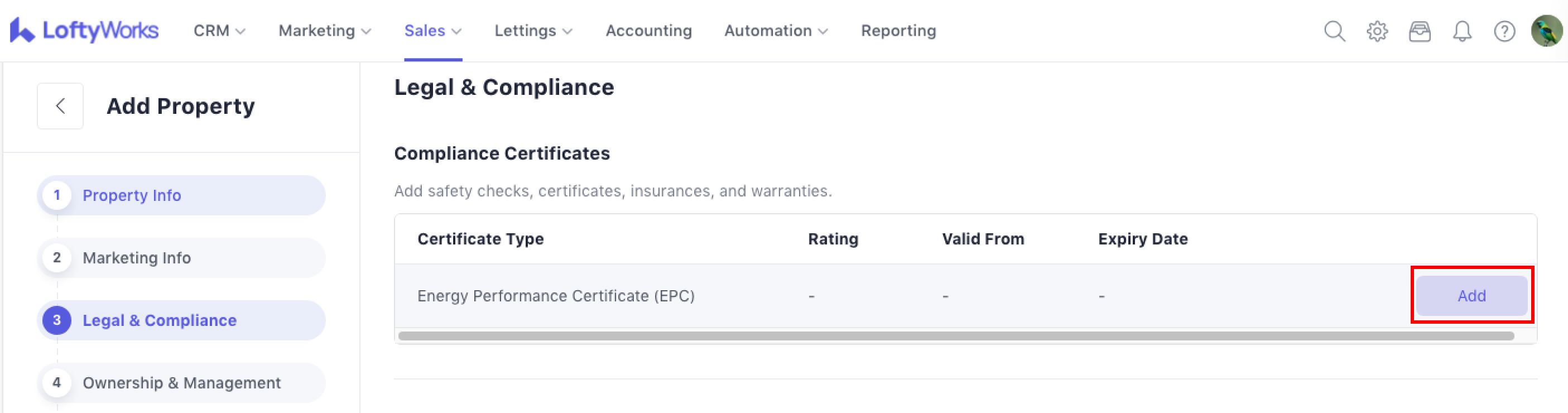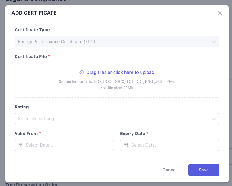 For for-sale properties, you can add one type of compliance certificate: the Energy Performance Certificate (EPC).