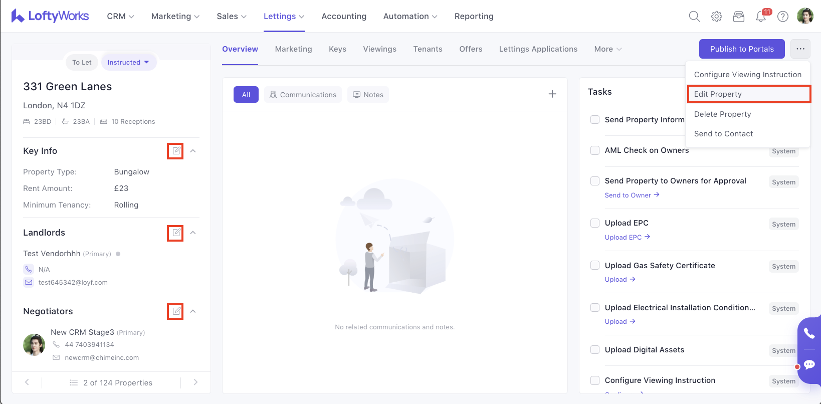 To update an existing property, open the Property Details page and click the Edit icon on the left-hand side.