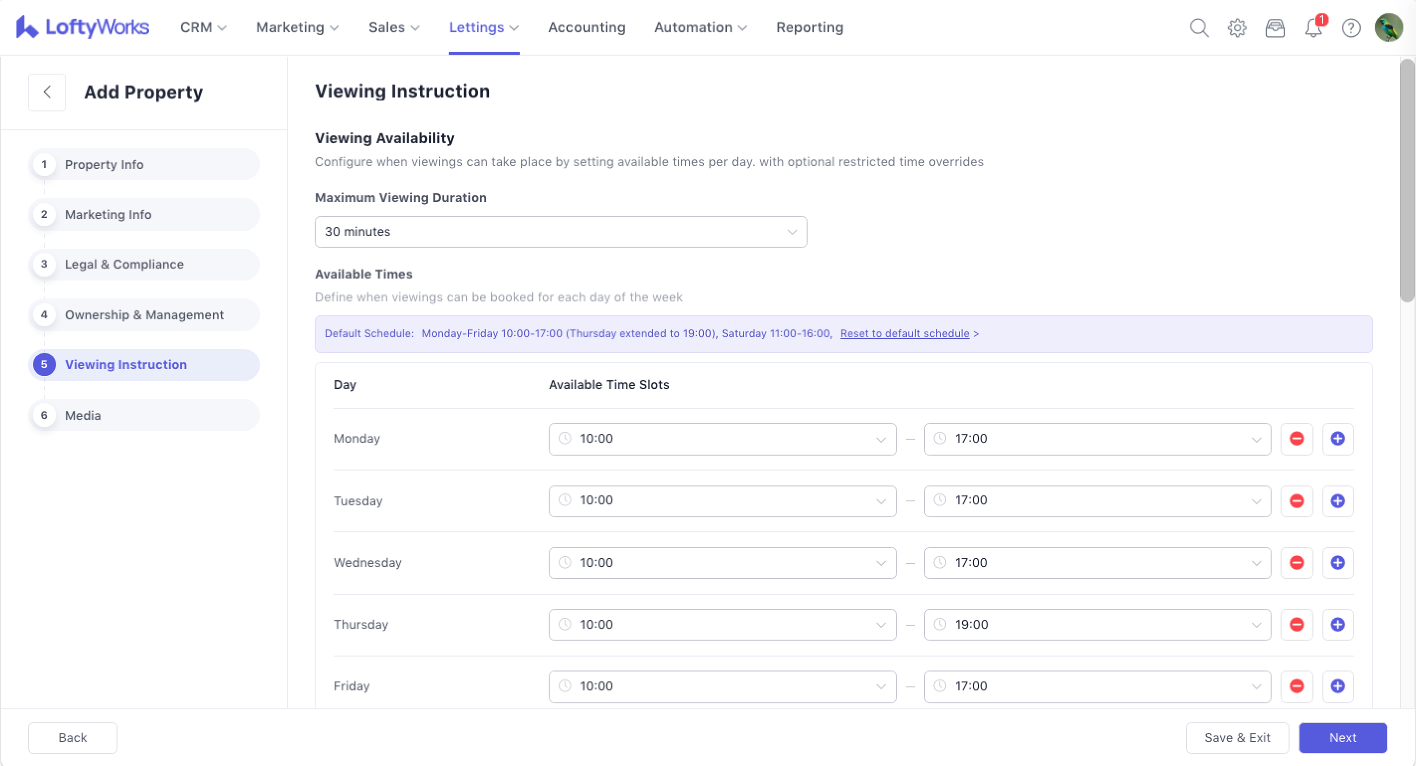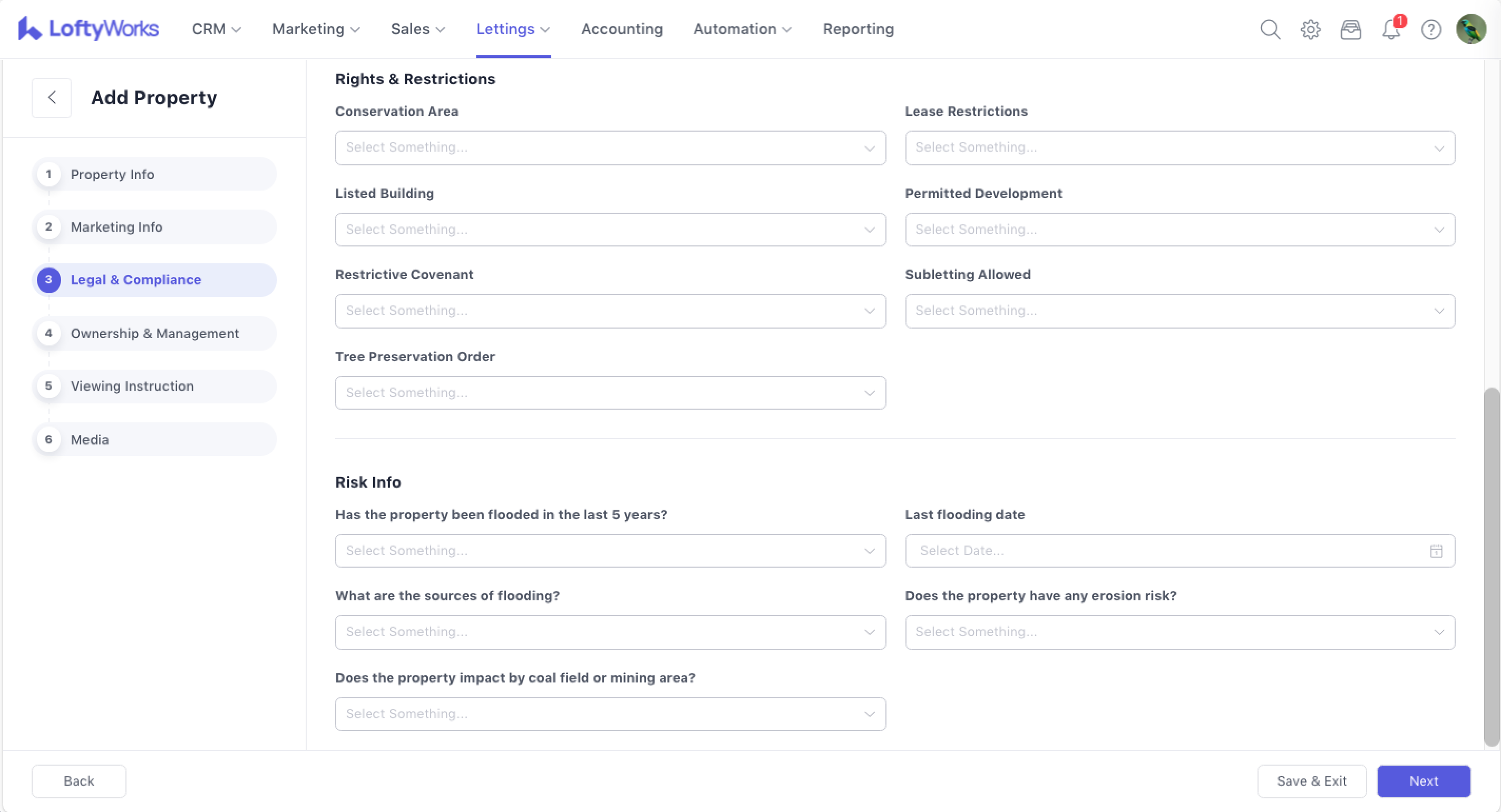 The Add / Edit Property feature allows you to create new property records or update existing ones. The process is guided through several steps, ensuring that essential information is captured accurately for lettings.