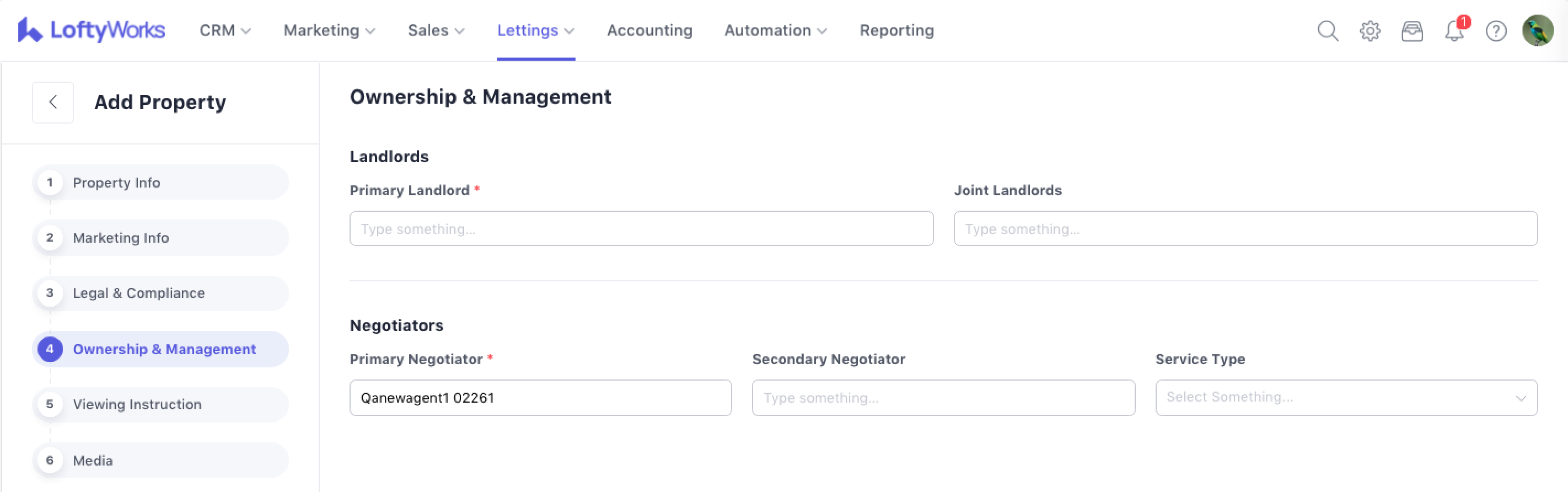 Primary negotiator cannot be edited, but you can choose secondary negotiators if needed. You can also select service type for this To Let property: Fully Managed, Rent Collection Only or Letting Only.
