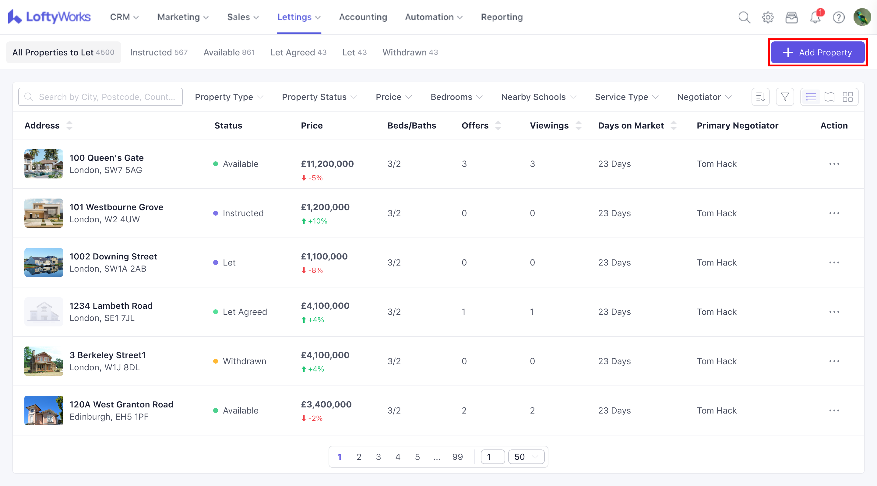 Published properties (Available, Let Agreed)