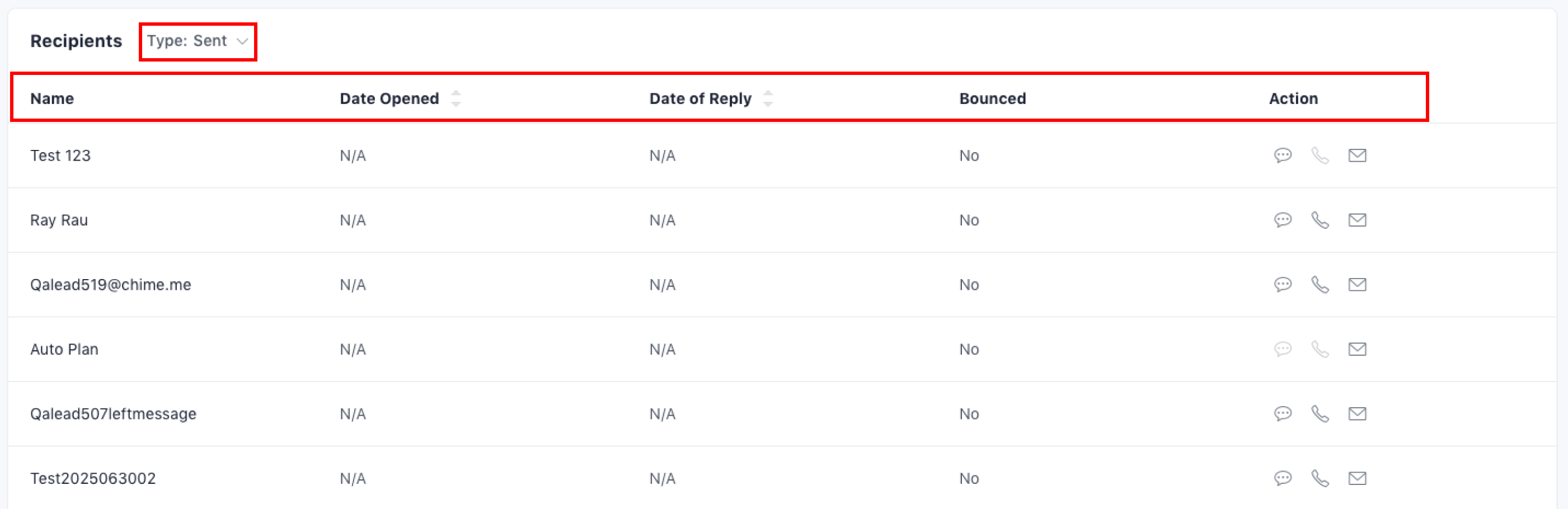 You can filter recipients by Sent, Opened, Clicked, Replied or Bounced. The number next to each filter shows how many contacts match that condition.