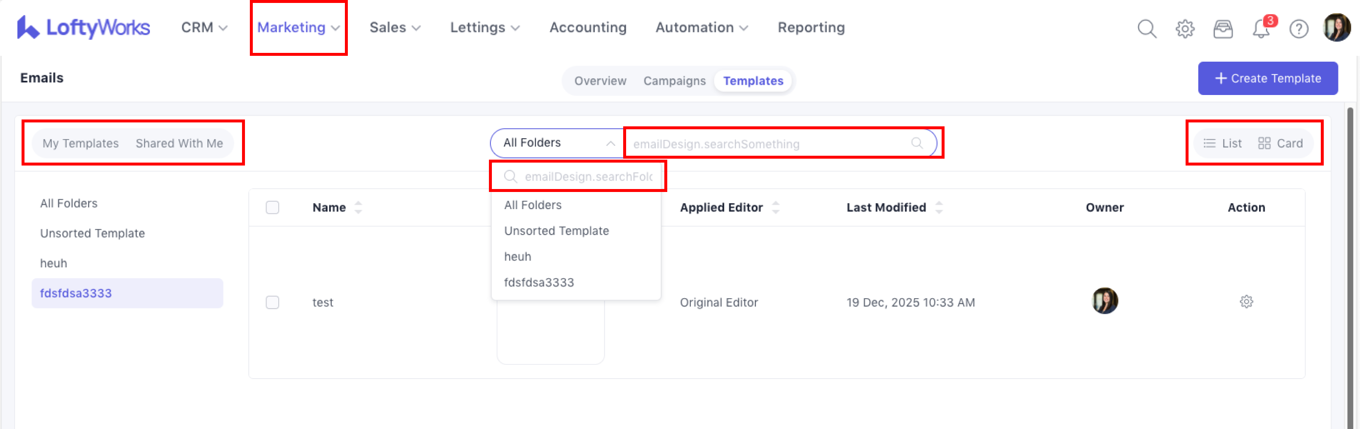 - Managing Templates in List/Card View