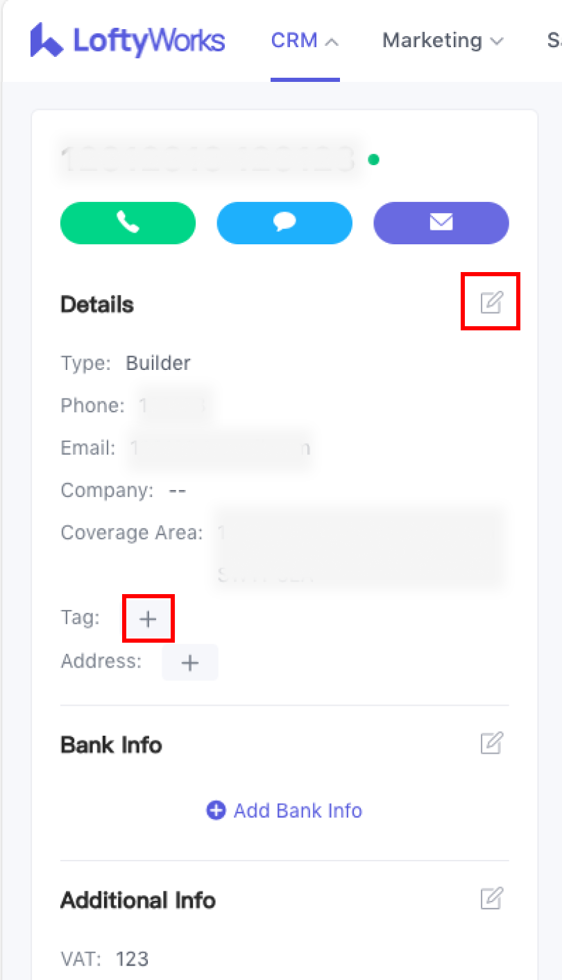 To add or edit contractor's personal information, simply click on + or Edit icon in each section: