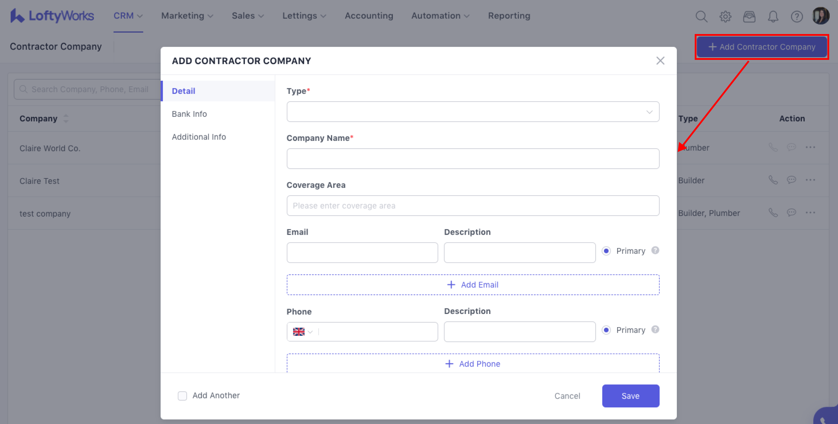 Click + Add Contractor Company at top-right corner to create a new contractor company profile.