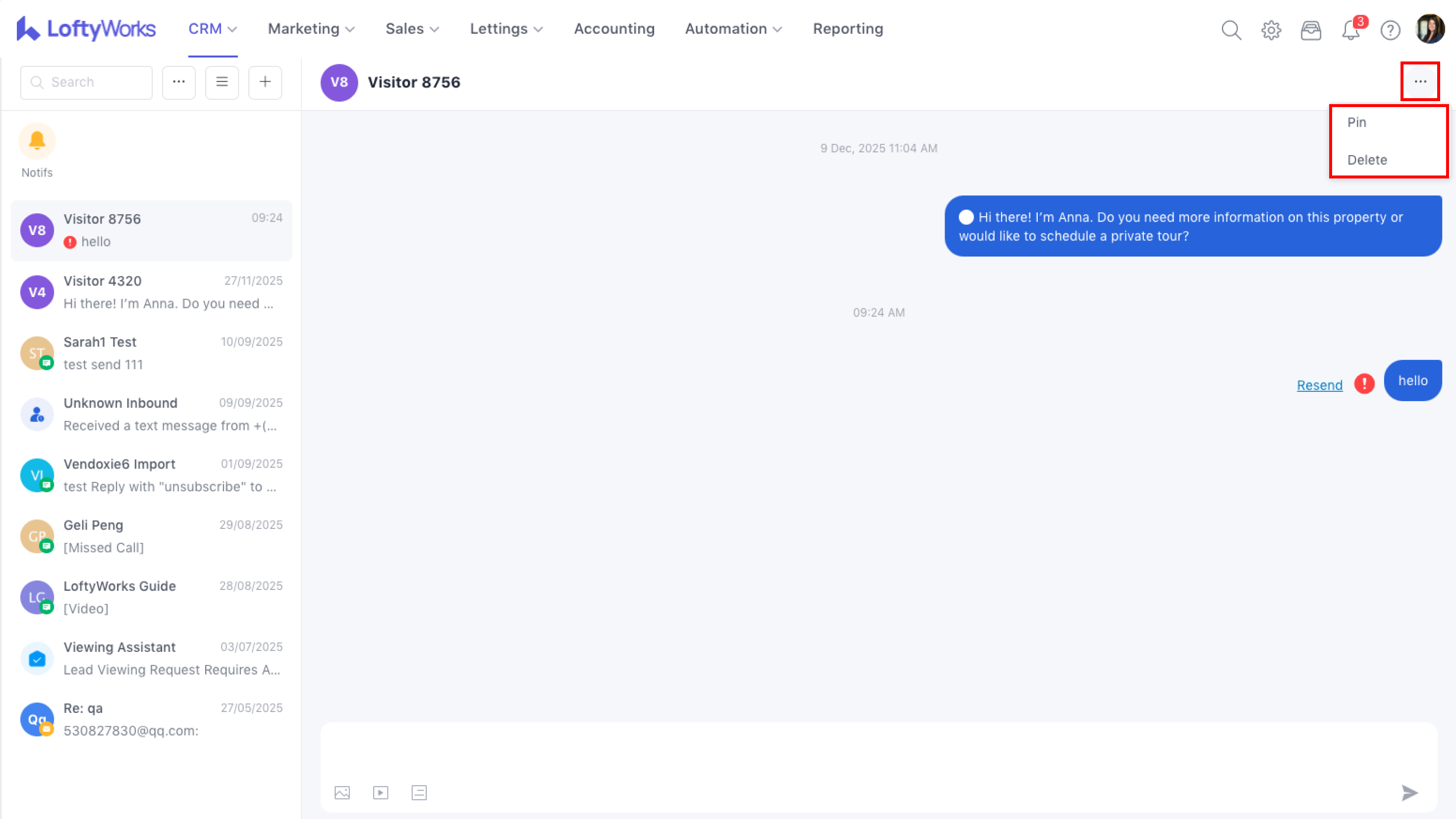 - You can PIN or delete a notification using the 3-dot option in the upper right.