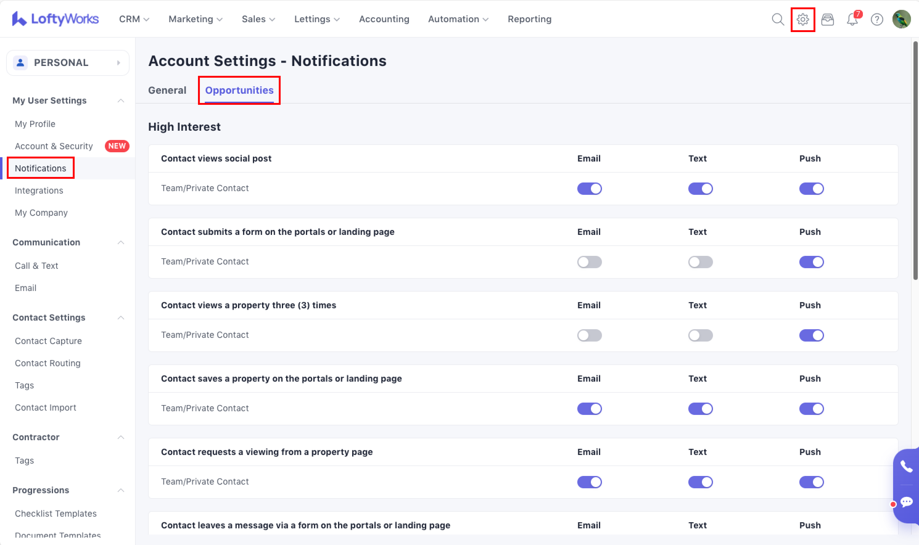 Opportunities are notifications that are triggered based on contact activities that LoftyWorks believes to be important to real estate agents. These notifications will allow for contacts that match certain behaviours to be prioritised and contacted quickly — thus avoiding missed opportunities.