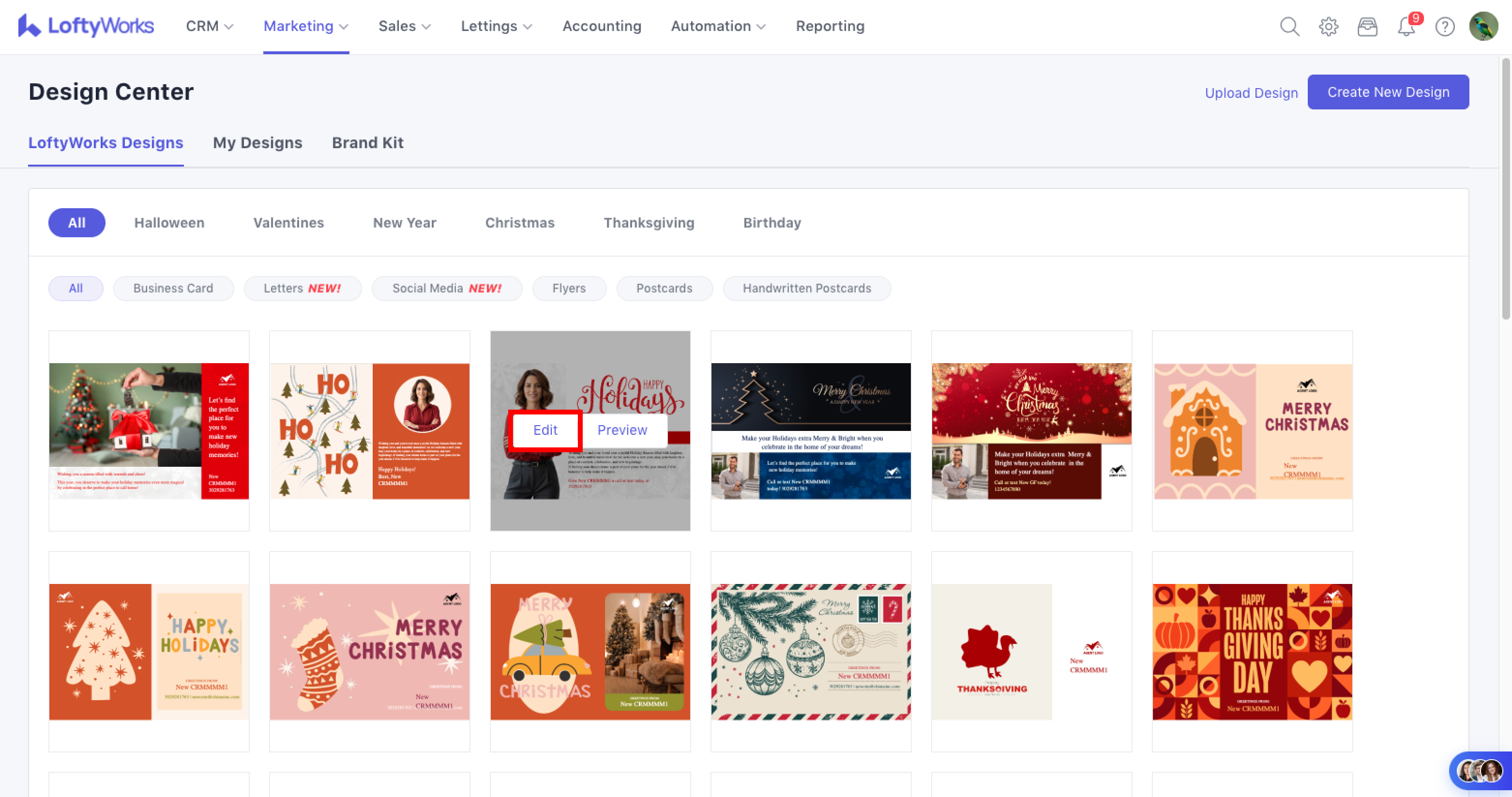 LoftyWorks provides a library of designs. Hover over a design and click Edit to get started.