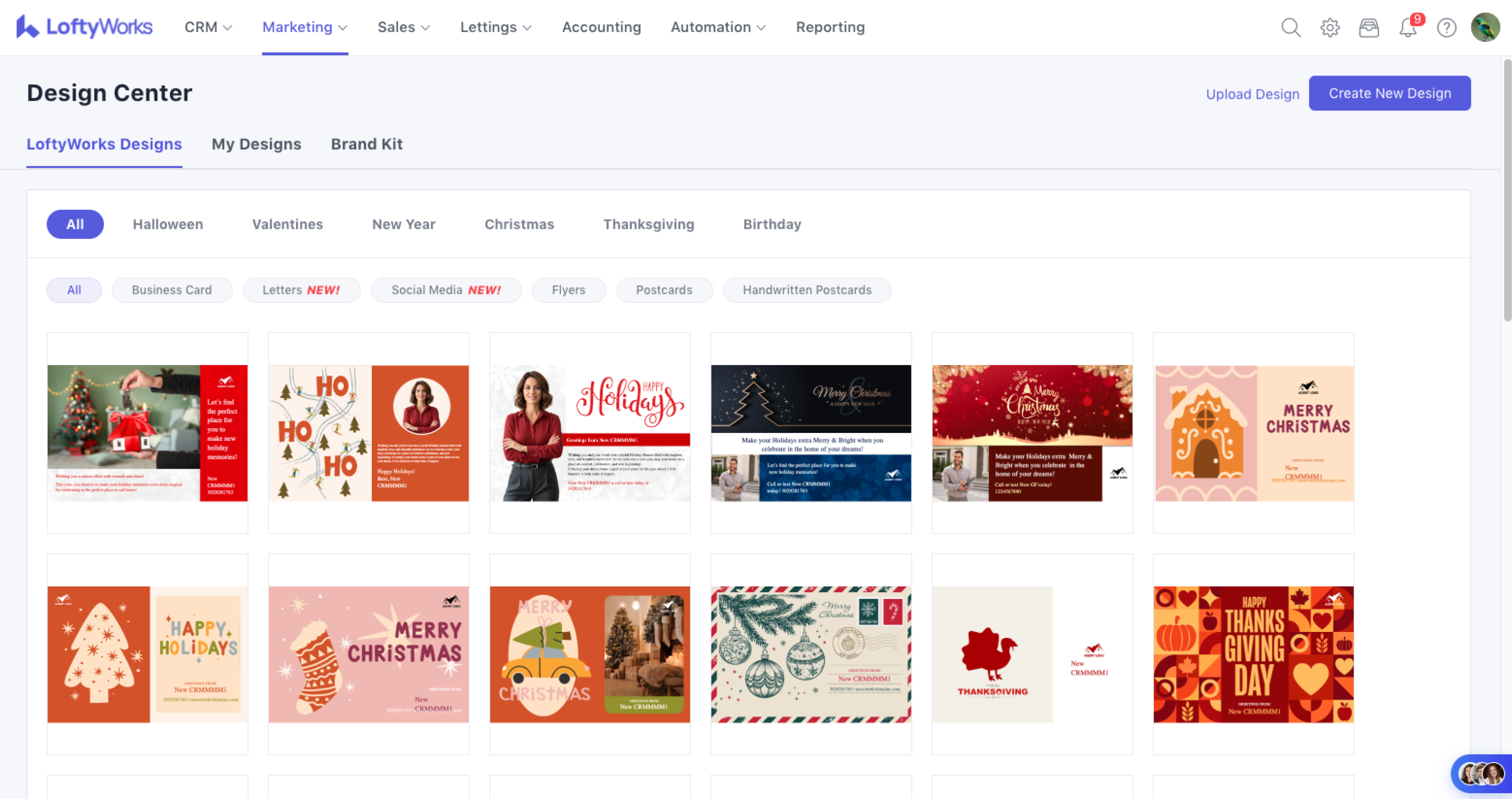 The LoftyWorks Design Center is a tool that can be used to create images with designs, logos, text, etc. to include in emails, flyers, or social media posts. This article will outline how to use the LoftyWorks Design Centre which is found in the CRM > Marketing > Design Center: