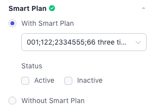 Search by a specific Smart Plan or whether a contact has any Smart Plans as Active/Inactive or does not have a Smart Plan assigned. Learn more about Smart Plans HERE.