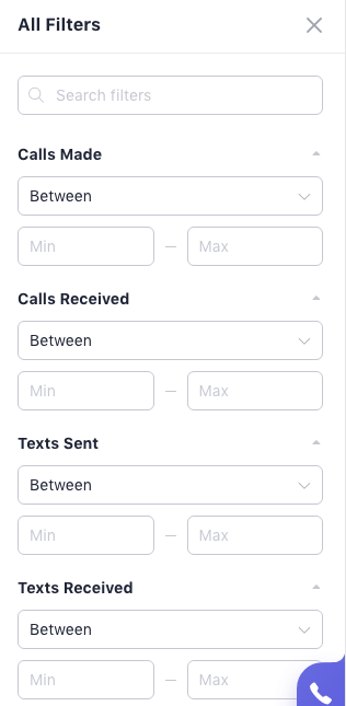 Three communication filters track outgoing/incoming communication totals for contacts. If a contact has matching communication that falls within the defined range of these filters, they will appear in the results.