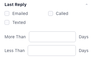 Search for the last time a contact has replied via email, call, or text, and during a certain period.