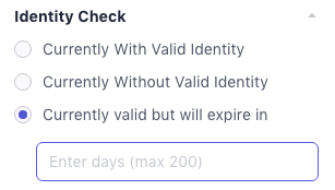 This filter includes fields that whether they have identity and the remaining validity period of their identity.