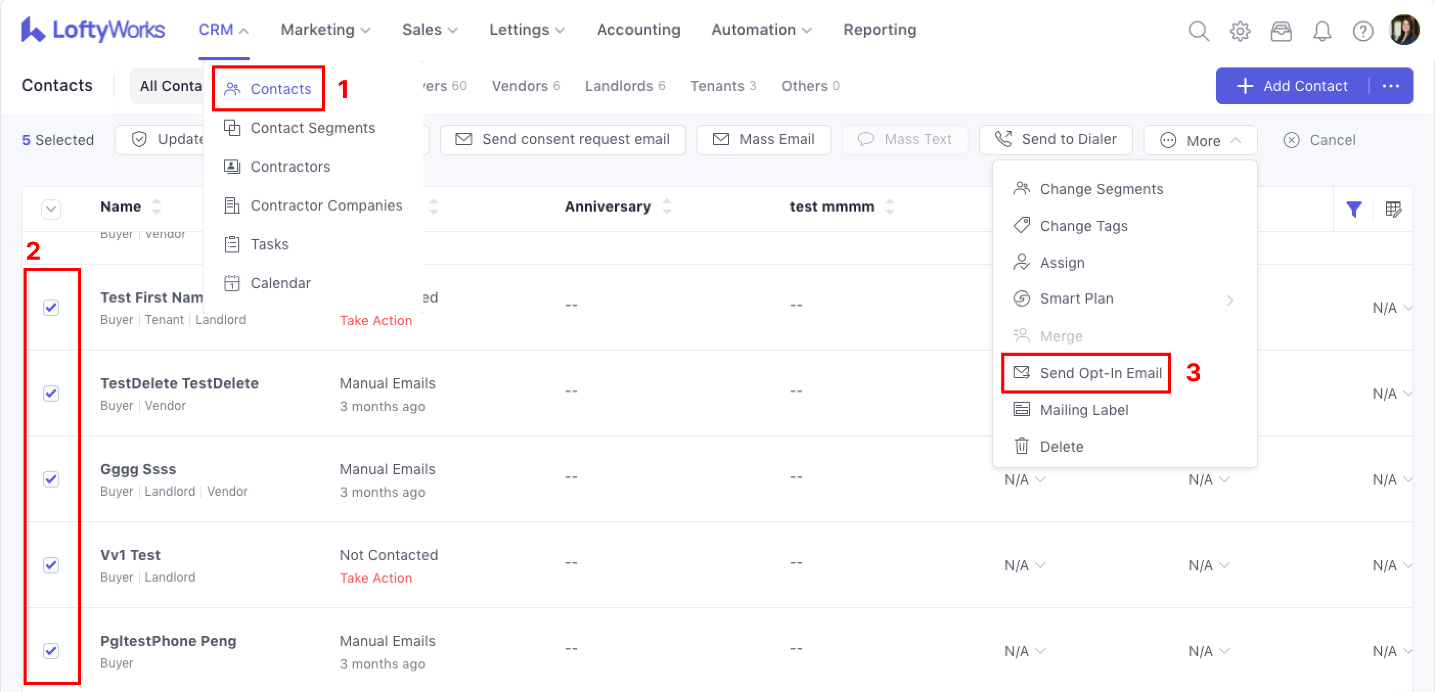 The email opt-in status refers to a contact's status of opting in or out for auto-email communication (one-off manual communication can be sent still). Per LoftyWorks's Terms of Use(link), the platform tools for email communication, etc. should not be utilised for sending emails to contacts that have not given their permission to be contacted.