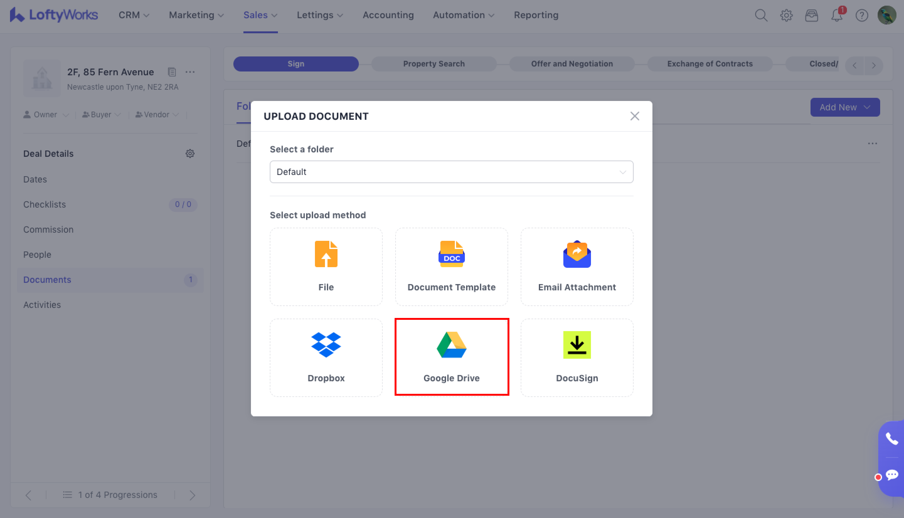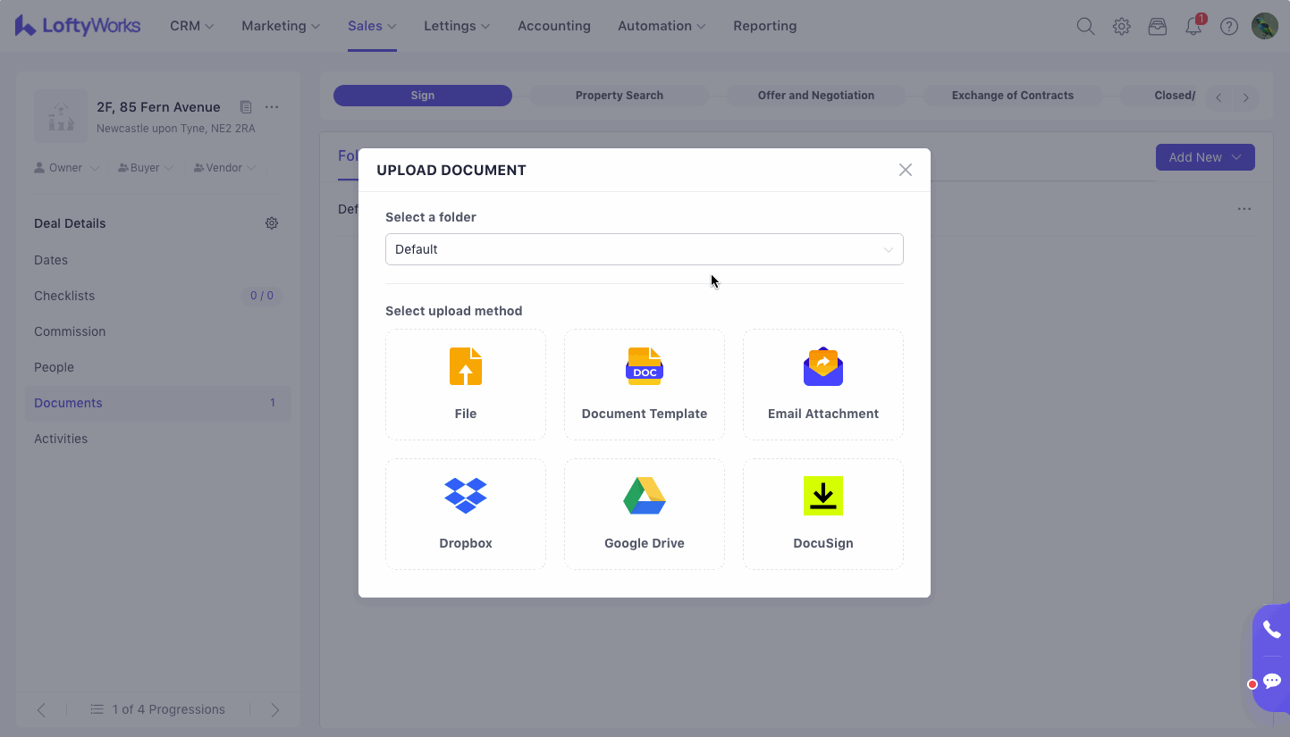 After clicking Upload, you'll see that there are many options to upload your documents to LoftyWorks.