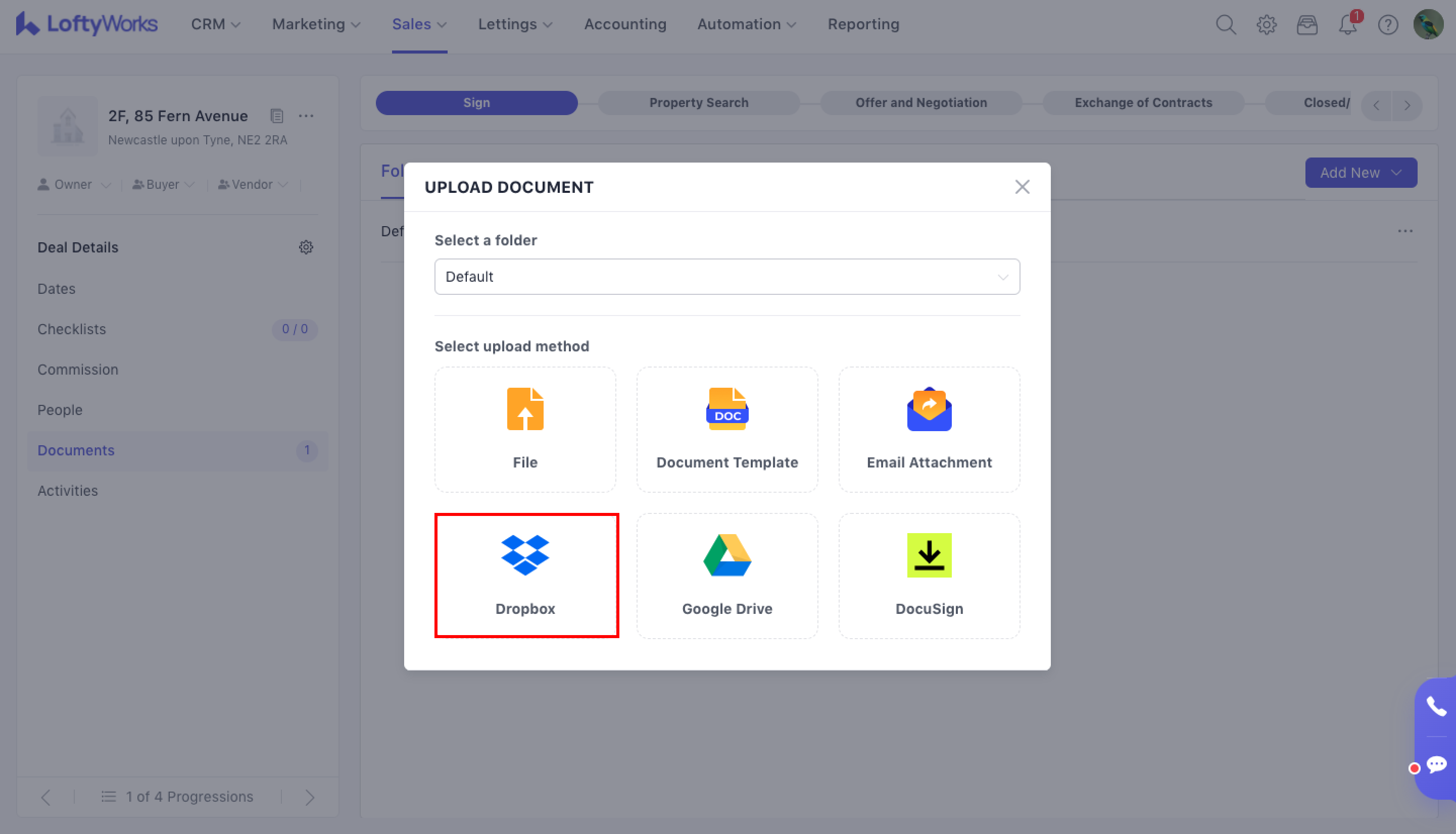 If you have a Dropbox account, integrate that here to upload document to LoftyWorks directly from Dropbox.