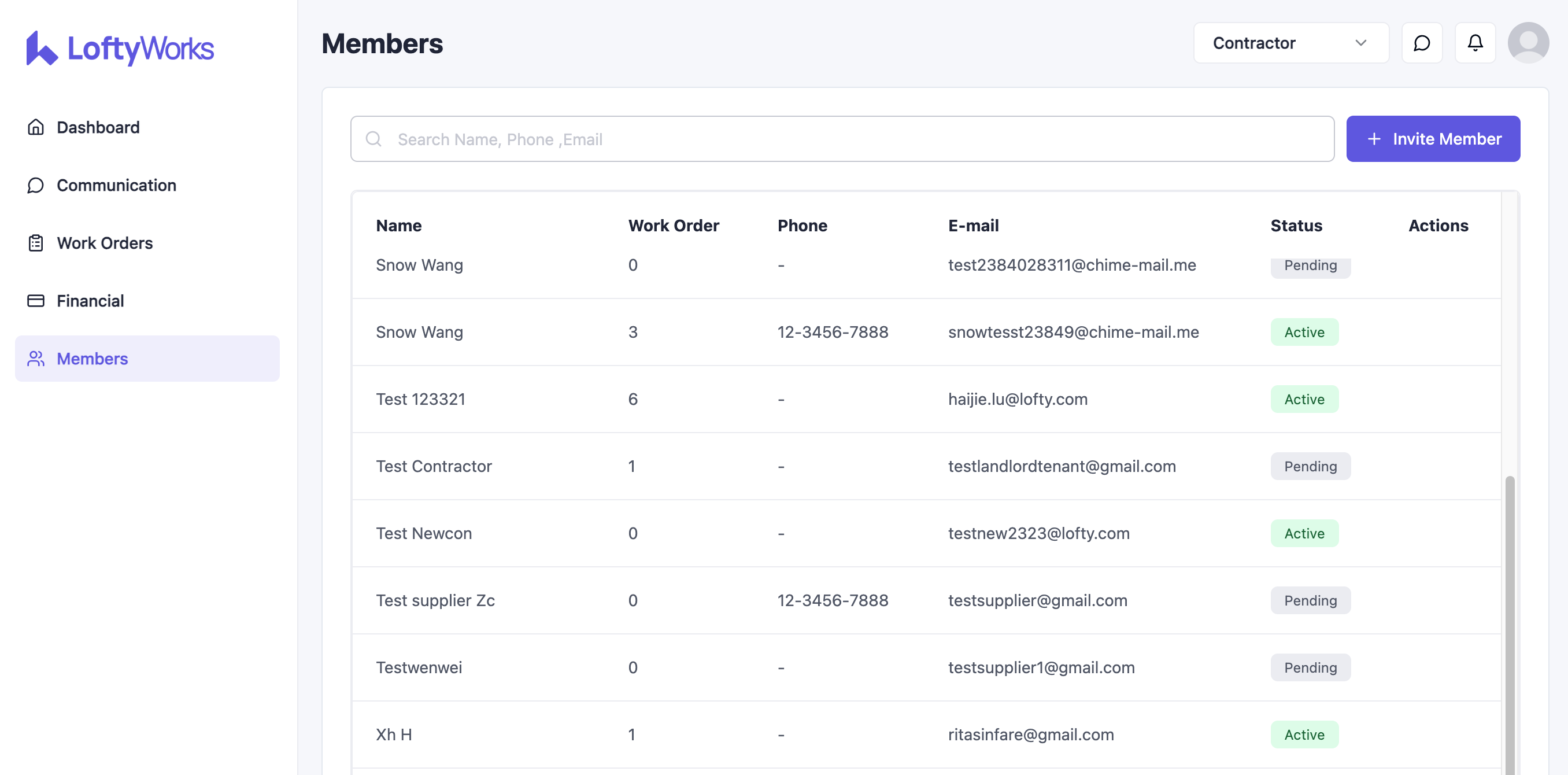The Members section is available to contractors who are linked to a Contractor Company in LoftyWorks. All members of the same company can view the list — but only the Primary Contractor can make changes.