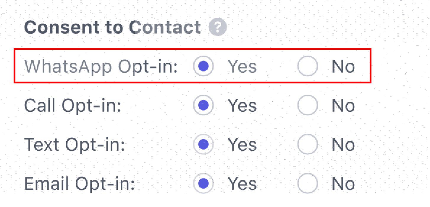 Before messaging a contact via WhatsApp, they must have opted in. You can view and update this under Consent to Contact on the contact's detail page.